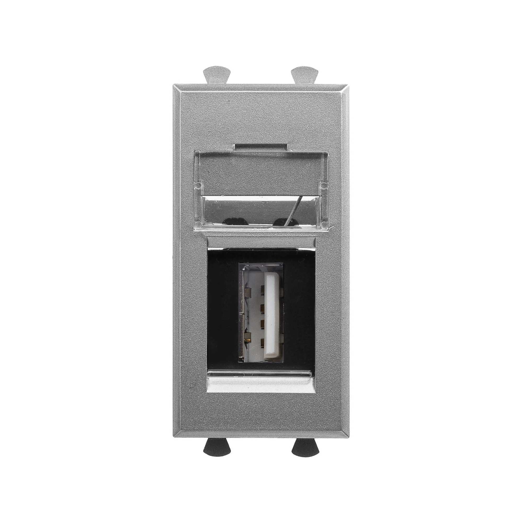 DKC Avanti USB 2.0 розетка модульная, тип А-А, «Закаленная сталь», 1 модуль