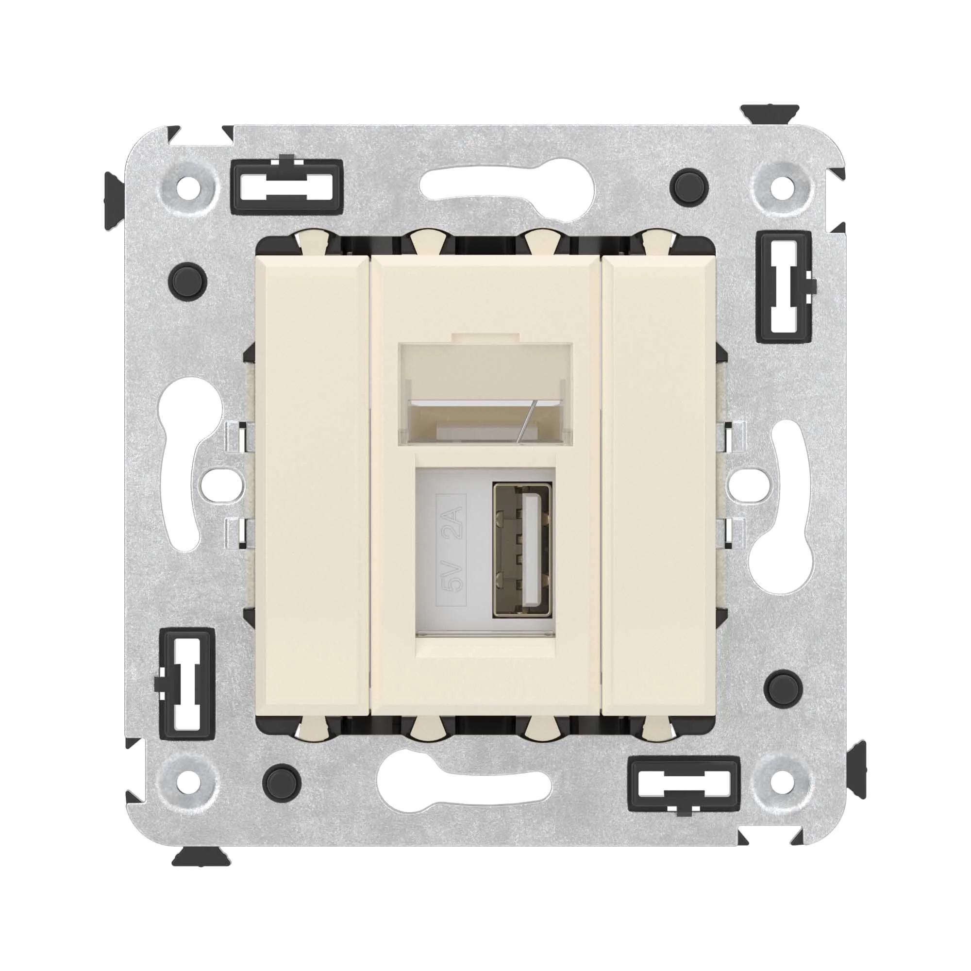 USB 2.0 розетка. Назначение: для монтажа в подрозеточные коробки глубиной не менее 45 мм (код 59301). Используется в качестве информационной розетки для передачи сигнала (подключение проекторов, мониторов и др.). Цвет: «Ванильная дымка». Производитель оставляет за собой право вносить во внешний вид изделия изменения, которые не влияют на его функционал, безопасность и надежность.