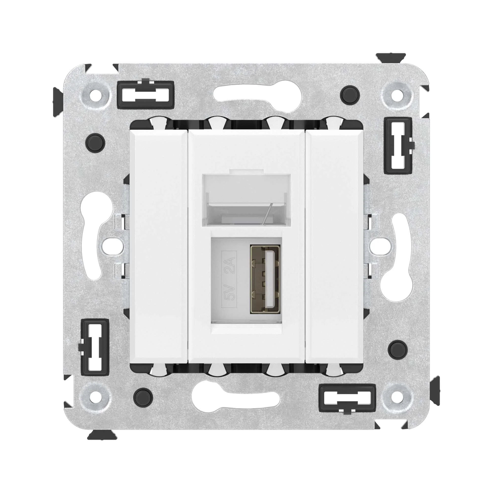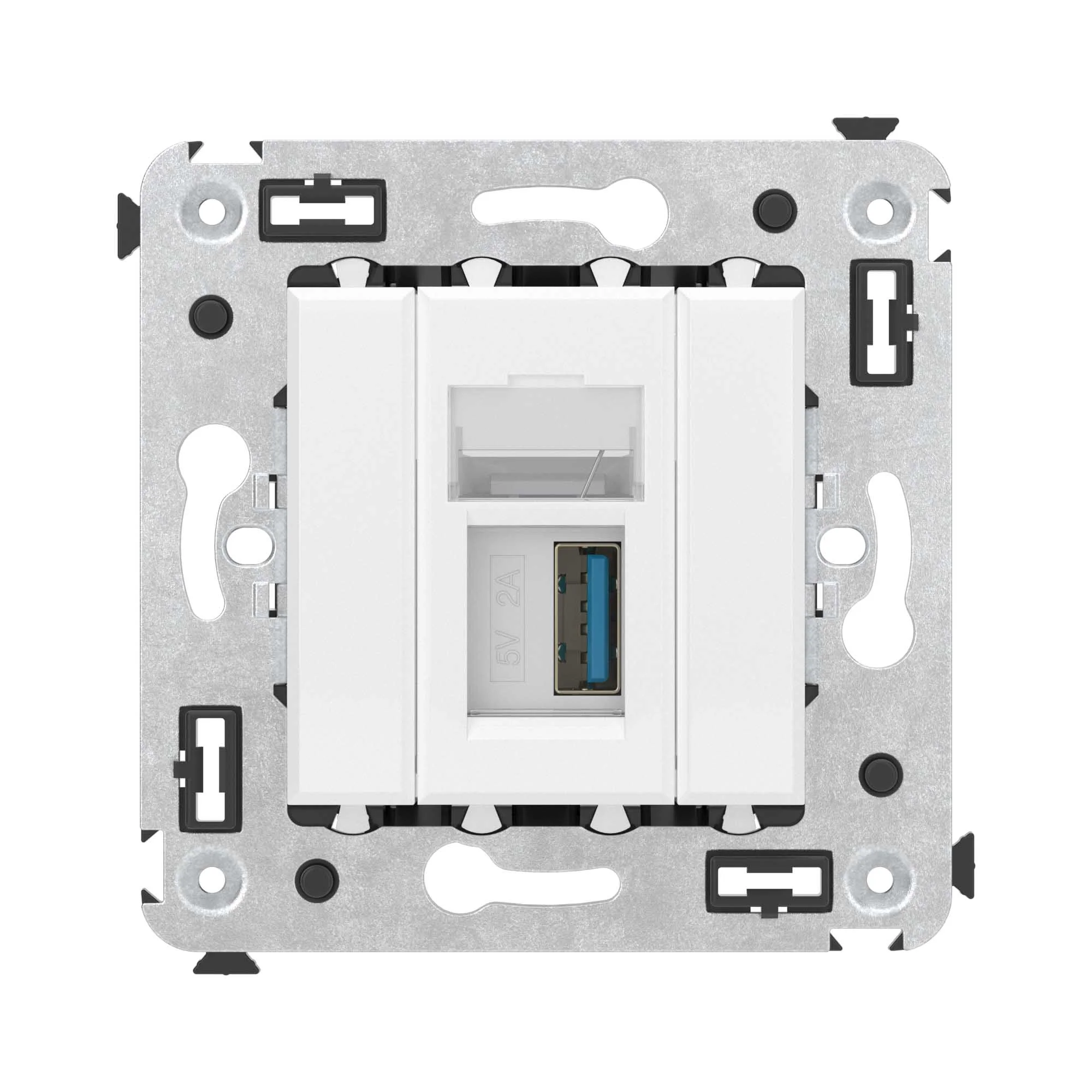 USB 2.0 розетка. Назначение: для монтажа в подрозеточные коробки глубиной не менее 45 мм (код 59301). Используется в качестве информационной розетки для передачи сигнала (подключение проекторов, мониторов и др.). 1 модуль. Цвет: «Белое облако». Производитель оставляет за собой право вносить во внешний вид изделия изменения, которые не влияют на его функционал, безопасность и надежность.