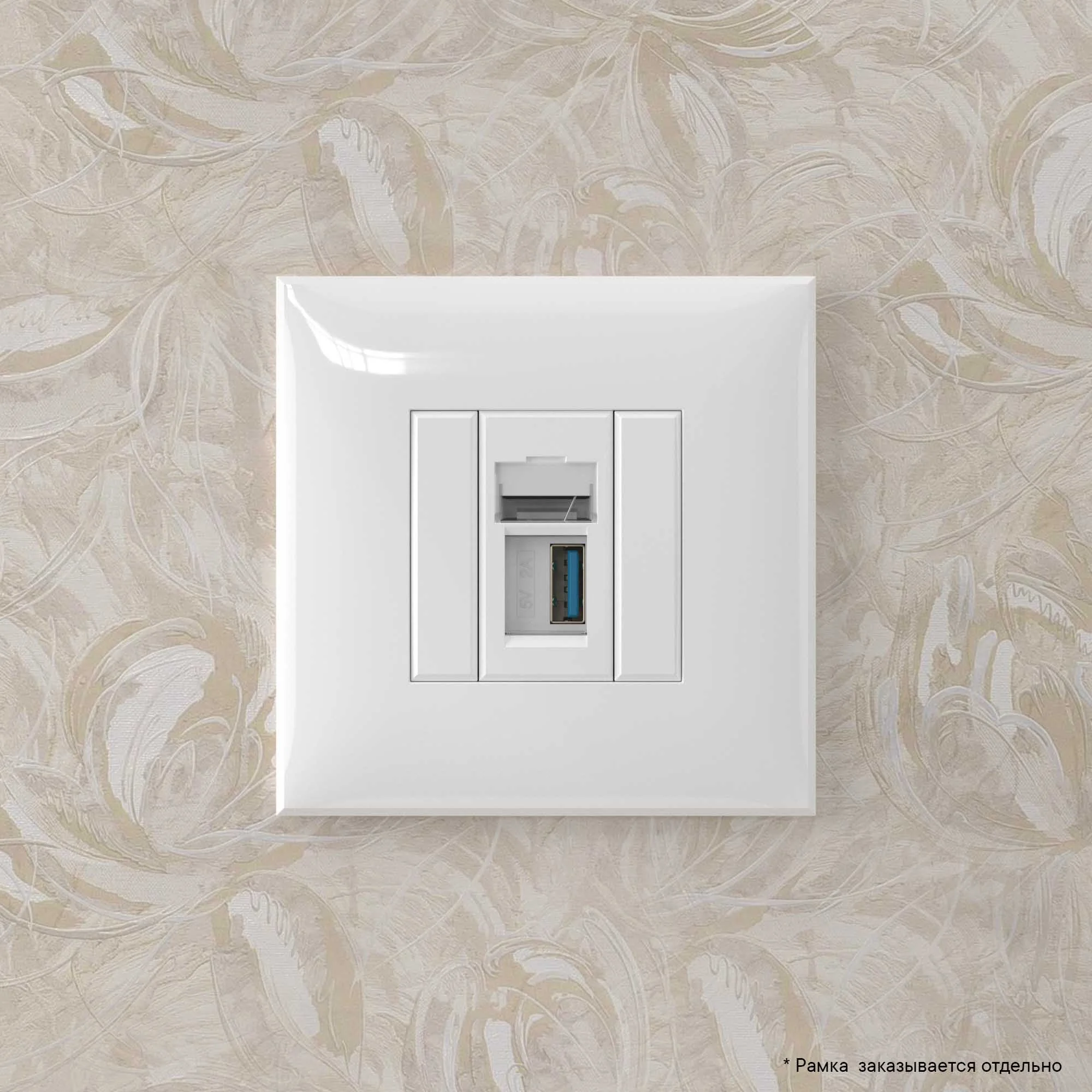 USB 3.0 розетка. Назначение: для монтажа в подрозеточные коробки глубиной не менее 45 мм (код 59301). Используется в качестве информационной розетки для передачи сигнала (подключение проекторов, мониторов и др.). 1 модуль. Цвет: «Белое облако». Производитель оставляет за собой право вносить во внешний вид изделия изменения, которые не влияют на его функционал, безопасность и надежность.