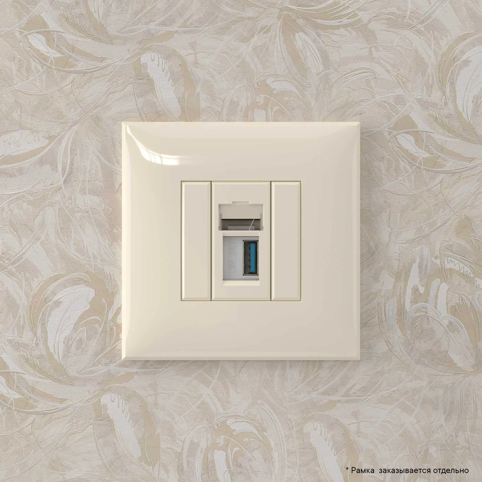 USB 3.0 розетка. Назначение: для монтажа в подрозеточные коробки глубиной не менее 45 мм (код 59301). Используется в качестве информационной розетки для передачи сигнала (подключение проекторов, мониторов и др.). Цвет: «Ванильная дымка». Производитель оставляет за собой право вносить во внешний вид изделия изменения, которые не влияют на его функционал, безопасность и надежность.