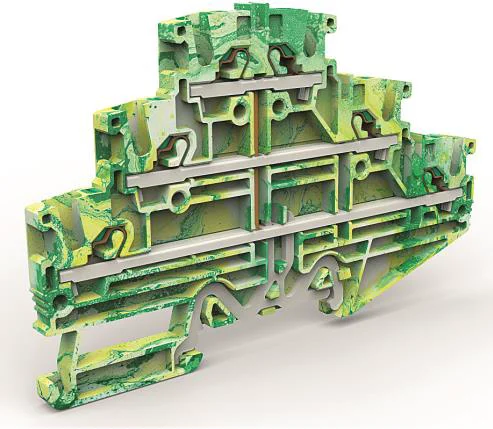 Клемма для заземления с Push-in зажимом предназначена для соединения двух проводников, а за счет кнопки-толкателя обеспечивается защита от ошибок при монтаже и случайного прикосновения. Клемма имеет электрический контакт с DIN-рейкой. Монтаж осуществляется на DIN-рейку OMEGA. Температура эксплуатации от -40 до +105оС. Корпус выполнен из ПА 6.6 с классом горючести V0 UL-94. Желто-зеленый цвет, 2 точки […]
