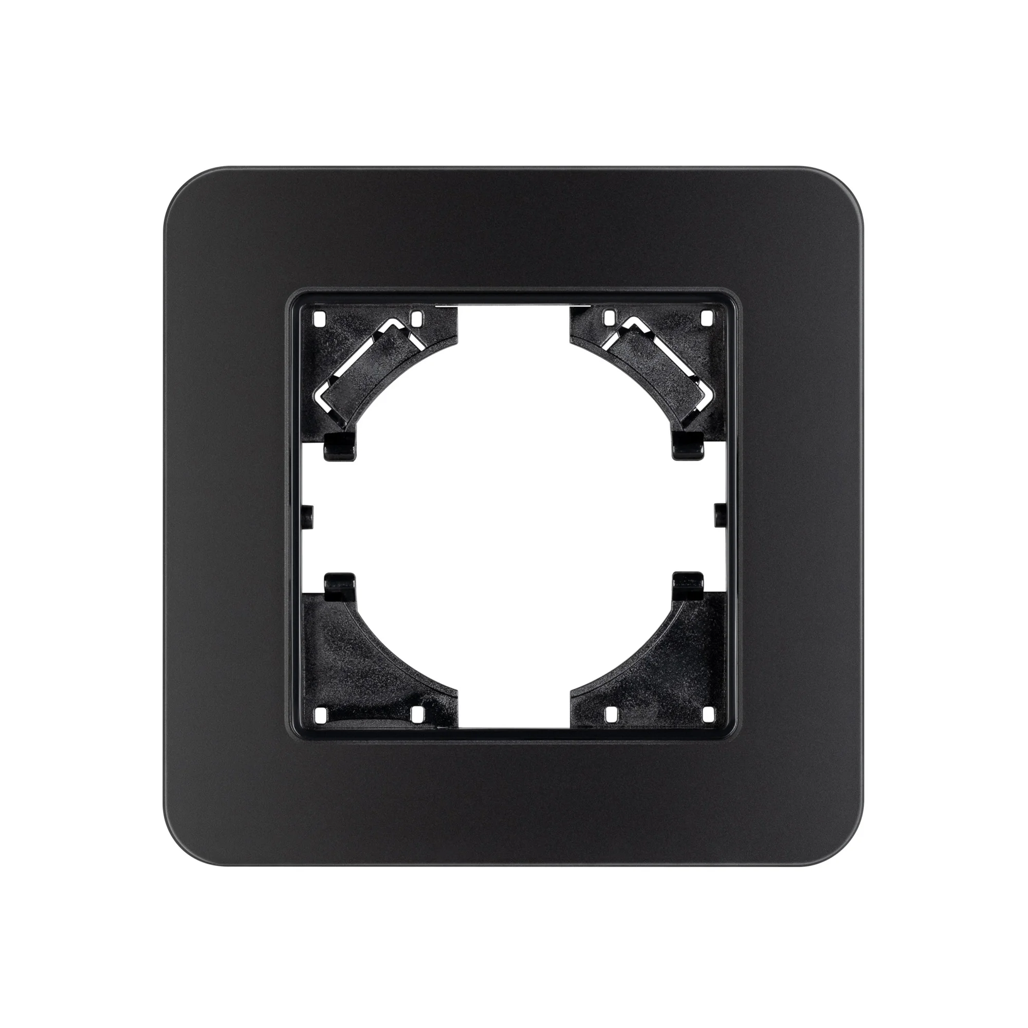Рамка алюминиевая на 1 пост, под встраиваемый механизм. Вырез под функциональную часть — круг. Цвет — черный. Ориентации монтажа — горизонтальная и вертикальная. Габаритные размеры: длина 82 мм, ширина 82 мм, высота 10 мм. Гарантийный срок 12 мес. Рамка совместима только с механизмами арт. 043739/043740/043741