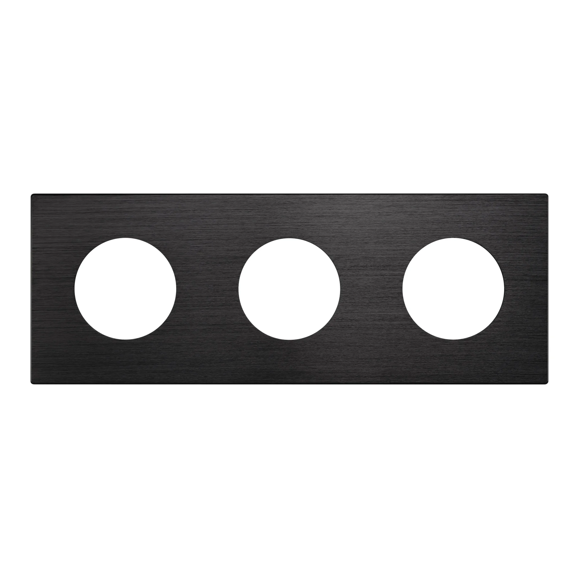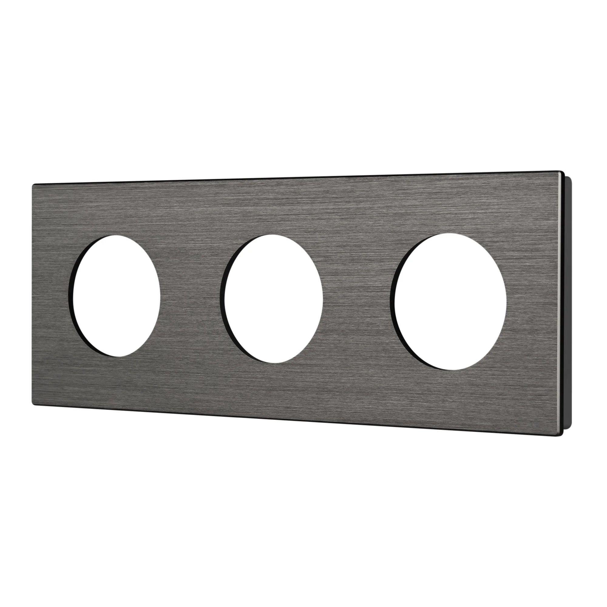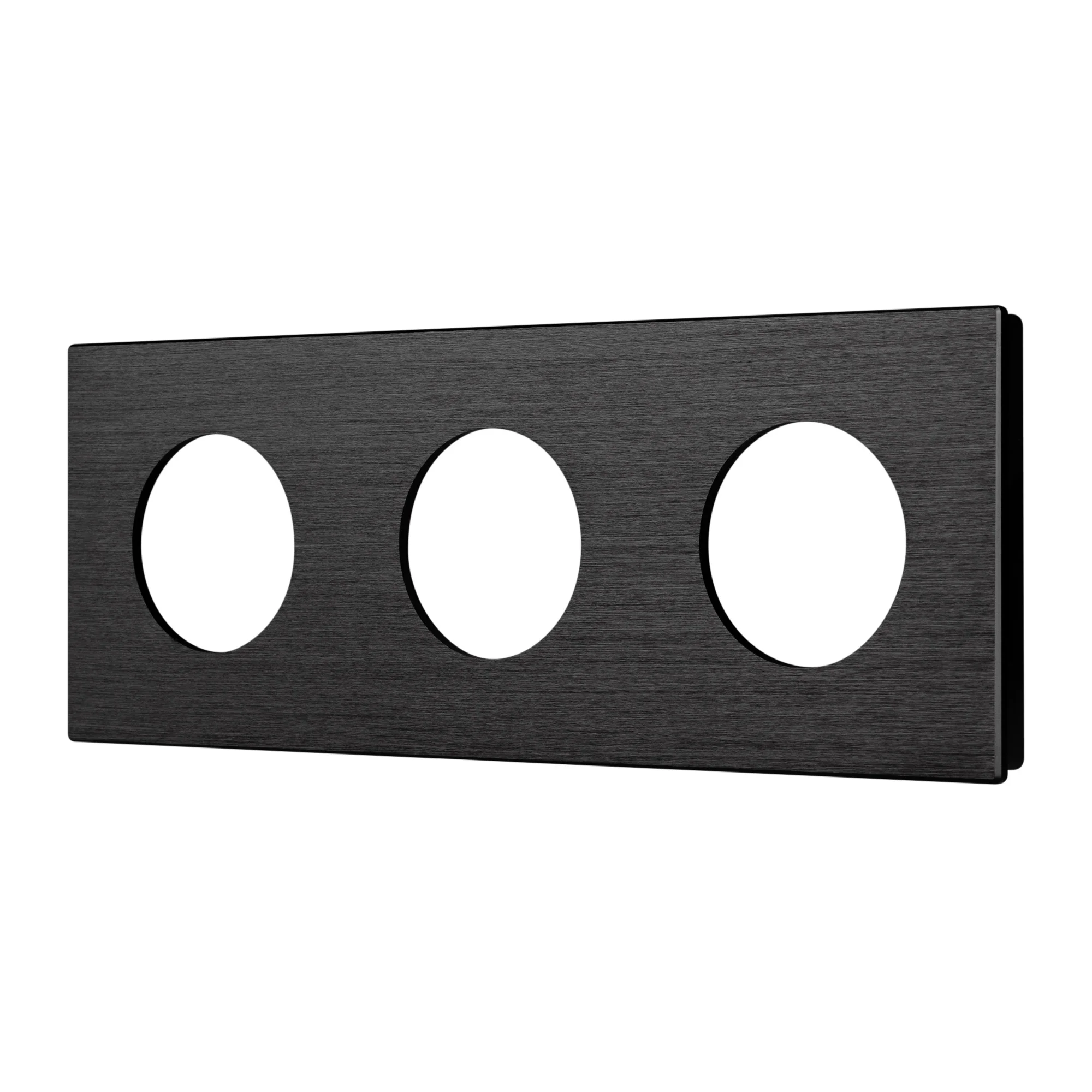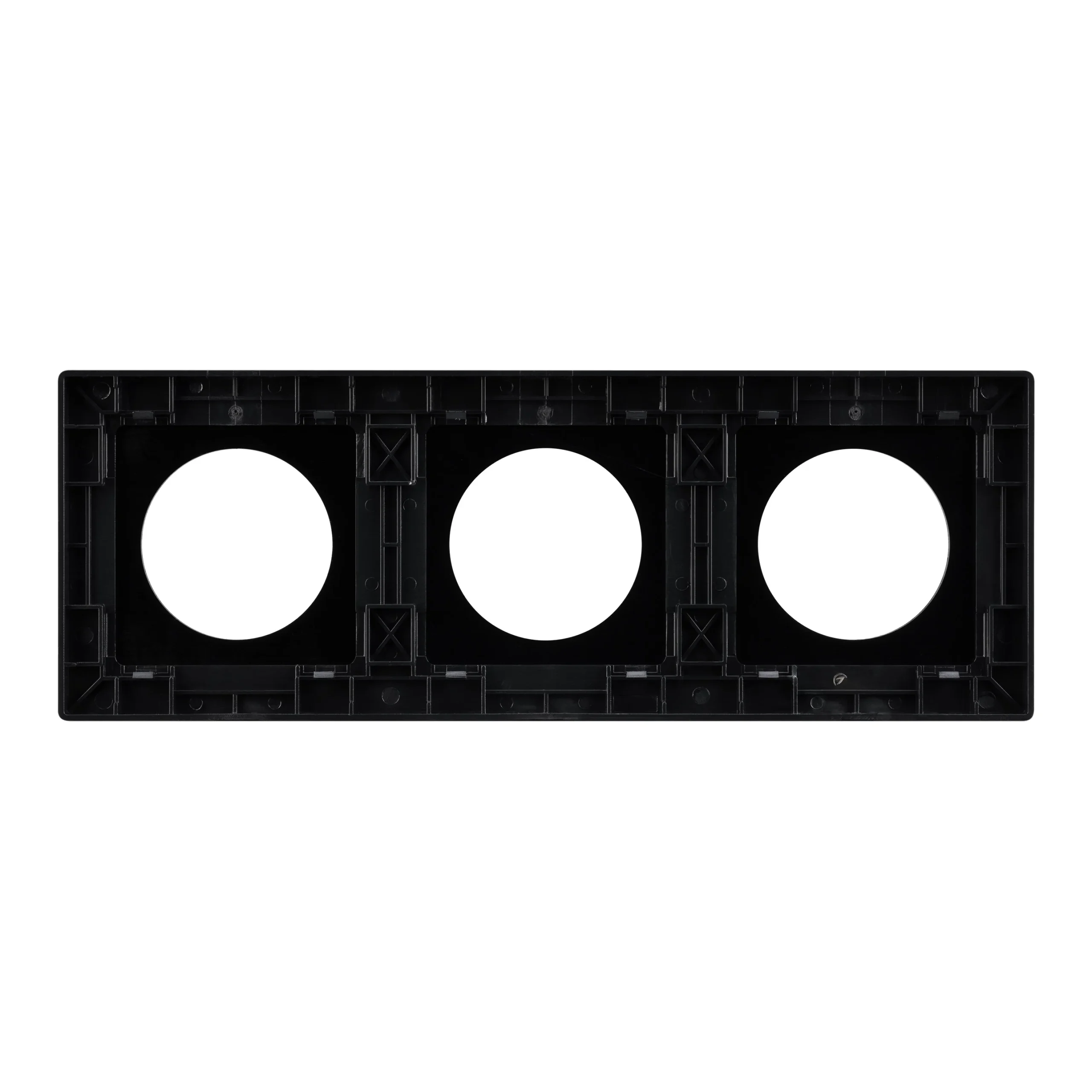 Рамка алюминиевая на 3 поста, под встраиваемый механизм. Вырез под функциональную часть — круг. Цвет — черный. Ориентации монтажа — горизонтальная и вертикальная. Габаритные размеры: длина 224 мм, ширина 82 мм, высота 10 мм. Гарантийный срок 12 мес. Рамка совместима только с механизмами арт. 043739/043740/043741