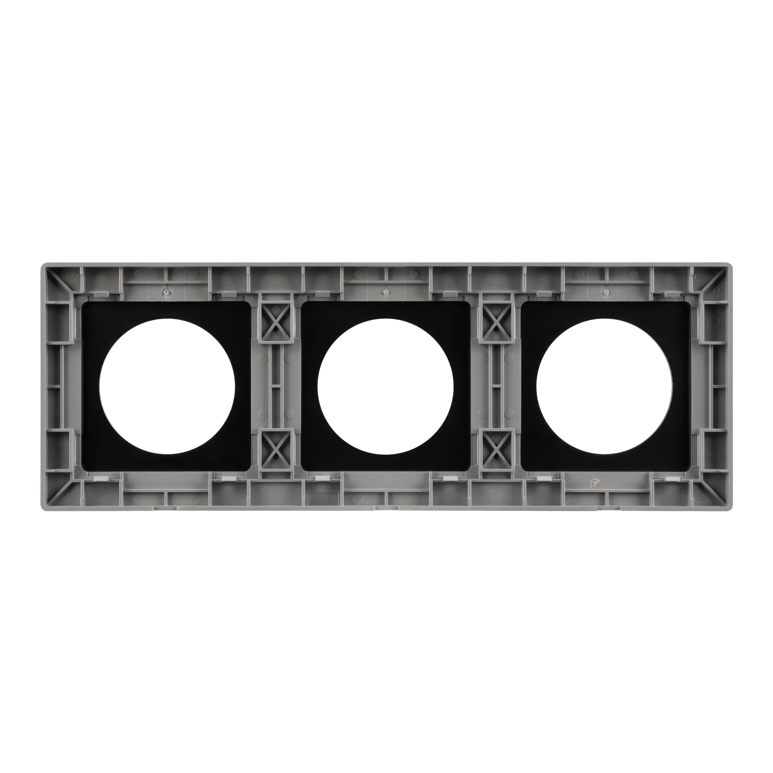 Рамка алюминиевая на 3 поста, под встраиваемый механизм. Вырез под функциональную часть — круг. Цвет — серый. Ориентации монтажа — горизонтальная и вертикальная. Габаритные размеры: длина 224 мм, ширина 82 мм, высота 10 мм. Гарантийный срок 12 мес. Рамка совместима только с механизмами арт. 043739/043740/043741