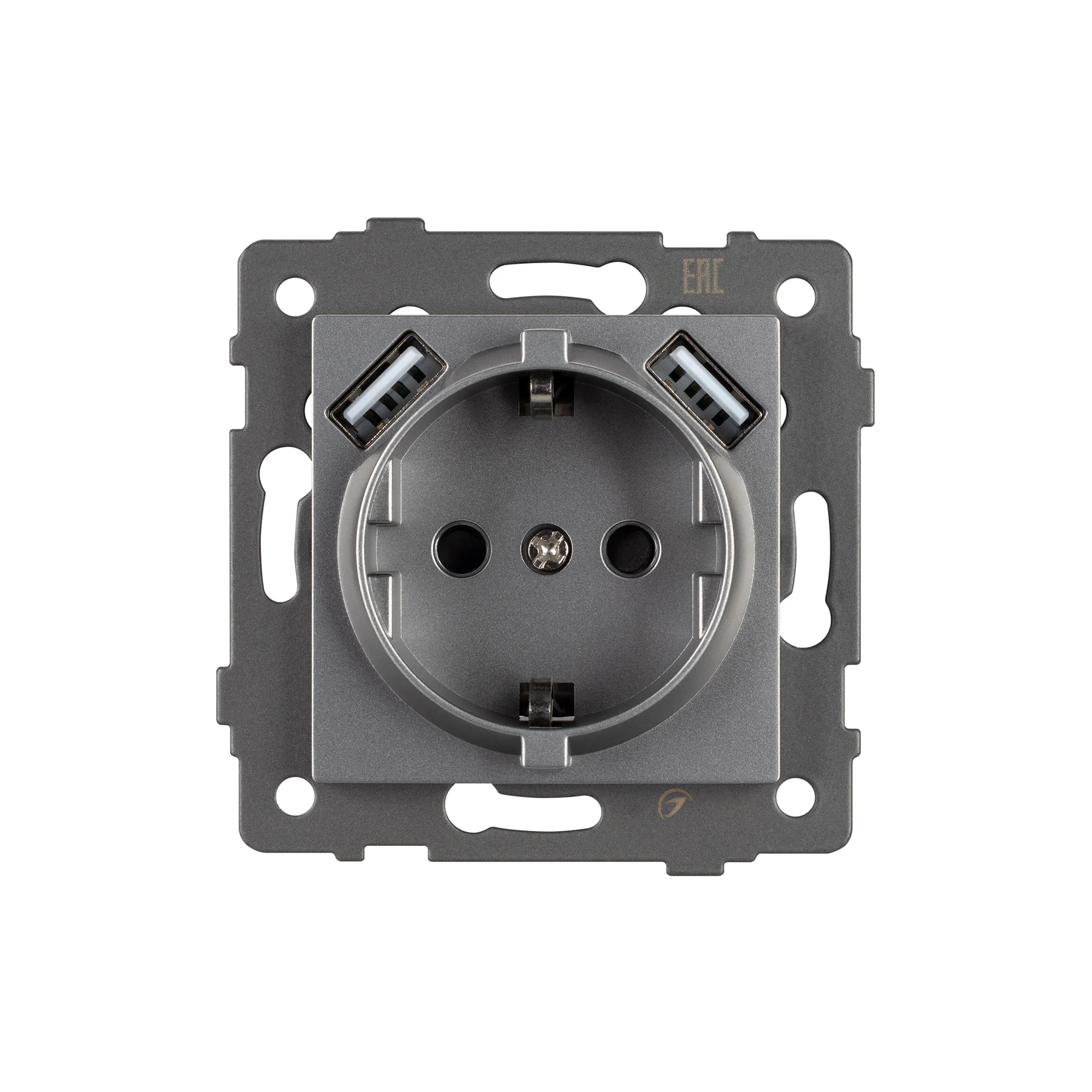 Arlight Механизм розетки с USB зарядкой SCT-MUAA-PL-GR-V (250V, 16A) (-)