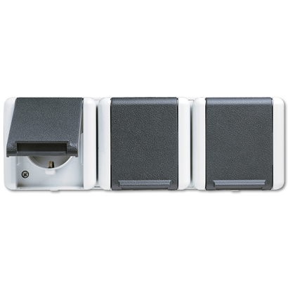 Тройная горизонтальная SCHUKO-розетка 16A 250V ~; для накладного монтажа IP44