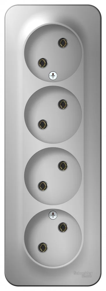 Systeme Electric Blanca наруж Алюминий Розетка 4-ая б/з без шторок 16А, 250В, изолир. пластина