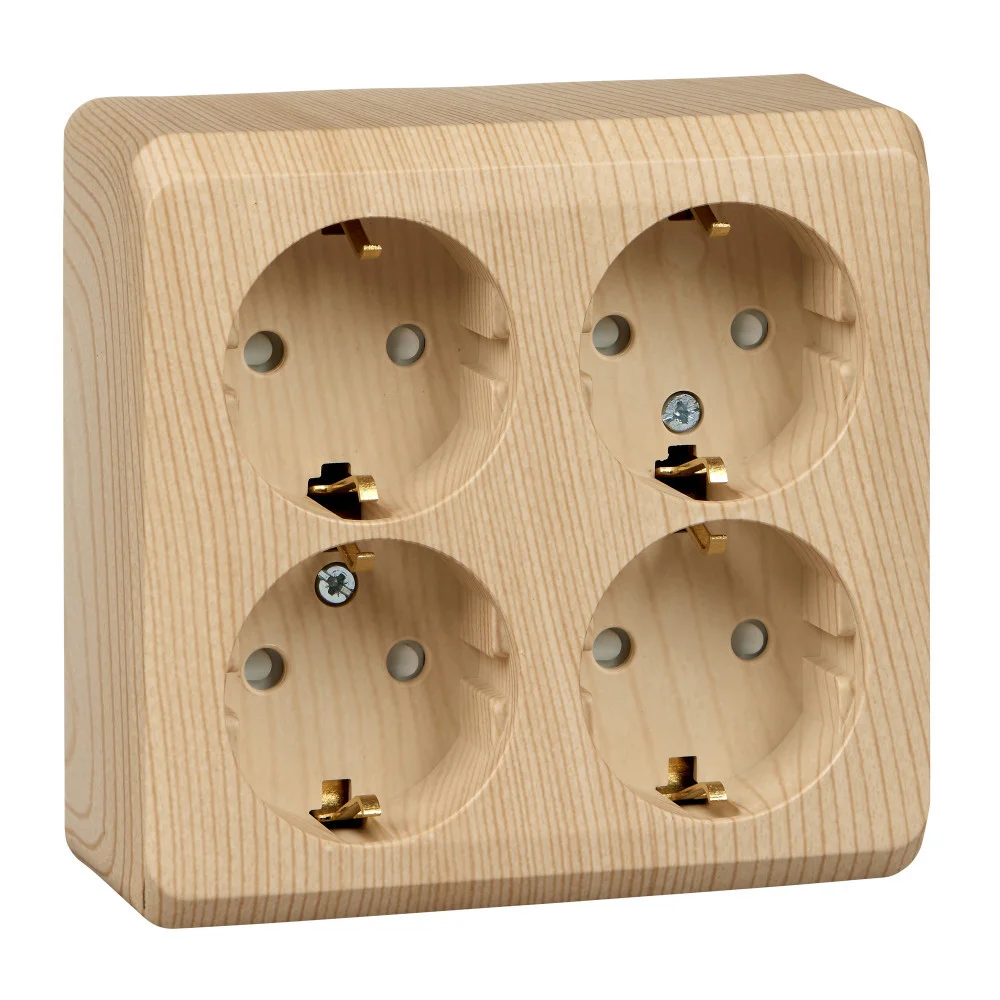 Systeme Electric Blanca наруж Ясень Розетка 4-ая б/з без шторок 16А, 250В, изолир. пластина
