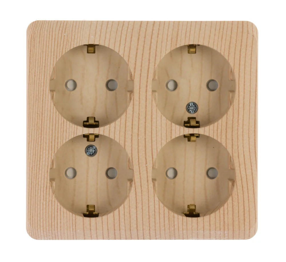 Розетка Systeme Electric (ранее Schneider Electric) ЭТЮД (сосна, открытой установки) четырёхместная с заземлением и шторками предназначена для применения в сетях до 250В, на ток до 16А. Четырёхместная розетка позволяет подключить четыре устройства в одном месте. Шторки и заземление обеспечивают дополнительную безопасность при косвенных прикосновениях. Изделия цвета Сосна обладают уникальным рисунком, напоминающим древесный сруб. Сделано в […]