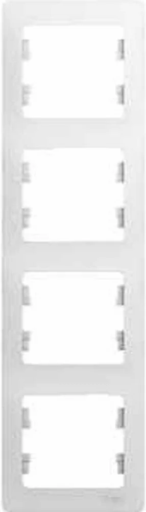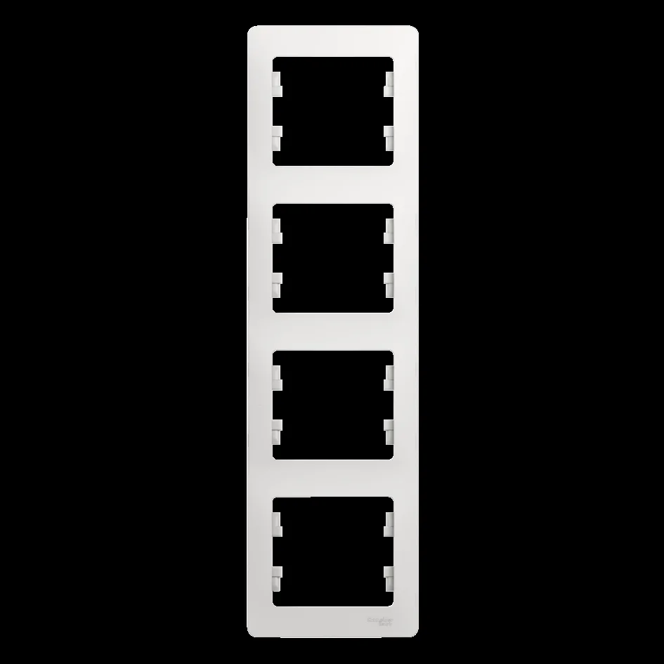 Рамка Systeme Electric (ранее Schneider Electric) серии Glossa (цвет белый) четырёхместная. — Устанавливается в вертикальном положении. — Выполнена из материала PС+ASA, стойкого к УФ-излучению и появлению царапин. — Позволяет гармонично вписать электроустановочное изделие в интерьер помещения.