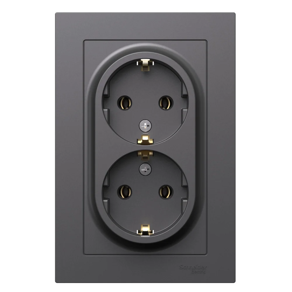 Розетка Systeme Electric (ранее Schneider Electric) BLANCA (антрацит, скрытой установки) двухместная, с заземлением и шторками предназначена для сетей до 250В, на ток до 16А. Двухместная розетка позволяет подключить два устройства в одном месте. Шторки и заземление обеспечивают дополнительную безопасность при косвенном прикосновении.