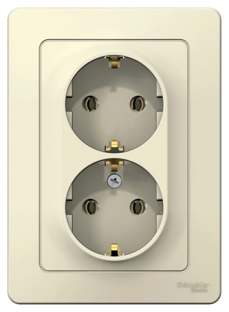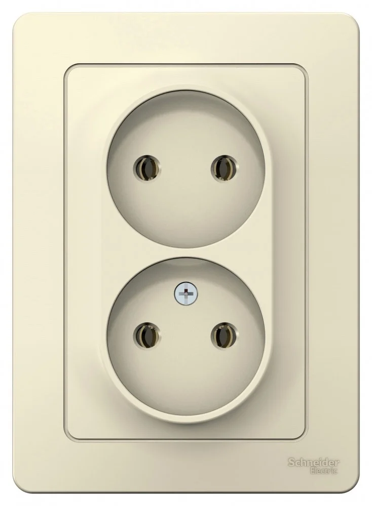 Розетка Systeme Electric (ранее Schneider Electric) BLANCA (скрытой установки, цвет бежевый) двухместная с заземлением без шторок, с изолирующей пластиной подходит для сетей 250 В, на ток 16 А. — Заземляющий контакт обеспечивает дополнительную защиту от удара электрическим током. При наличии заземления электрический потенциал уходит в землю, защищая человека. -Корпус изделия выполнен из ABS-пластика.