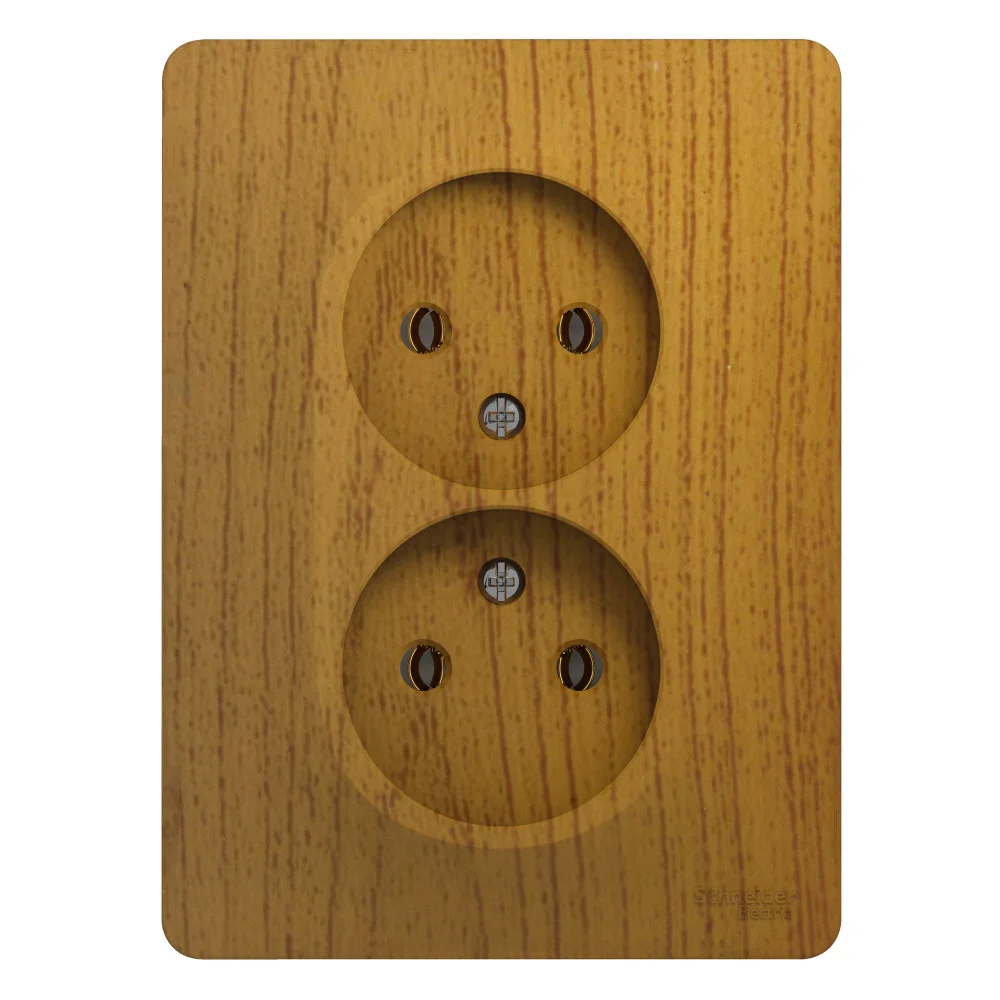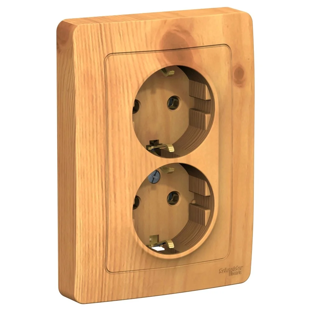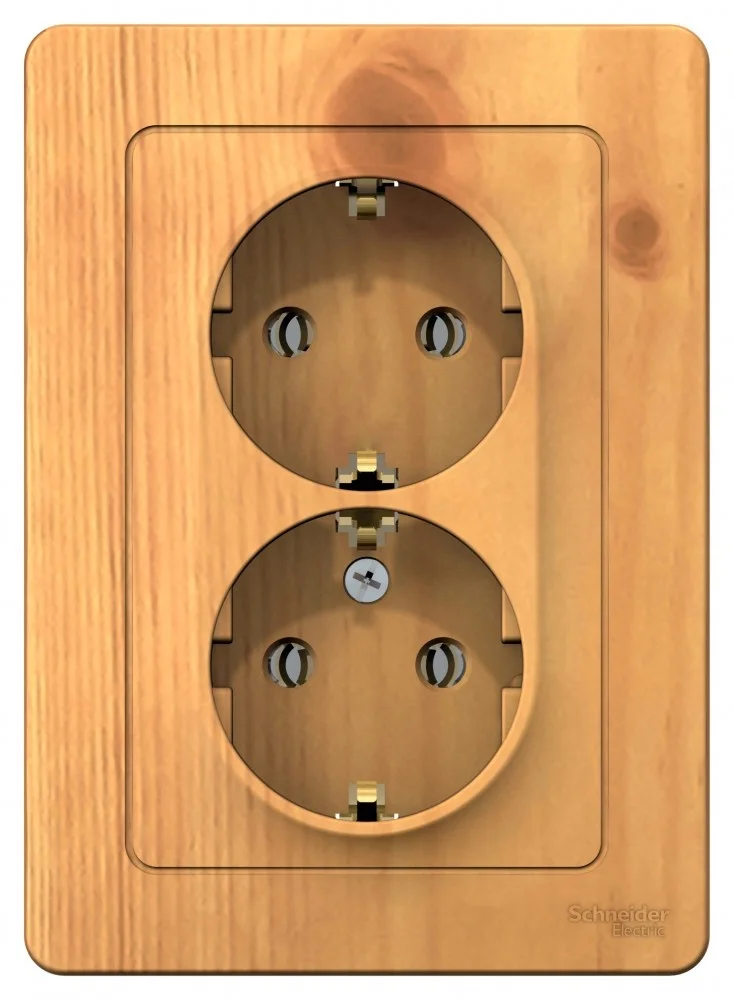 Розетка Systeme Electric (ранее Schneider Electric) BLANCA (ясень, открытой установки) двухместная, с заземлением, шторками и изолирующей пластиной предназначена для сетей до 250В, на ток до 16А. Двухместная розетка позволяет подключить два устройства в одном месте. Шторки и заземление обеспечивают дополнительную безопасность при косвенном прикосновении. Изделия цвета Ясень обладают уникальным рисунком, напоминающим древесный сруб.