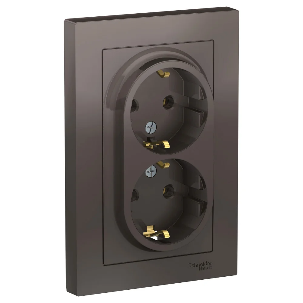Systeme Electric AtlasDesign Мокко Розетка с/з двойная, 16А, в сборе