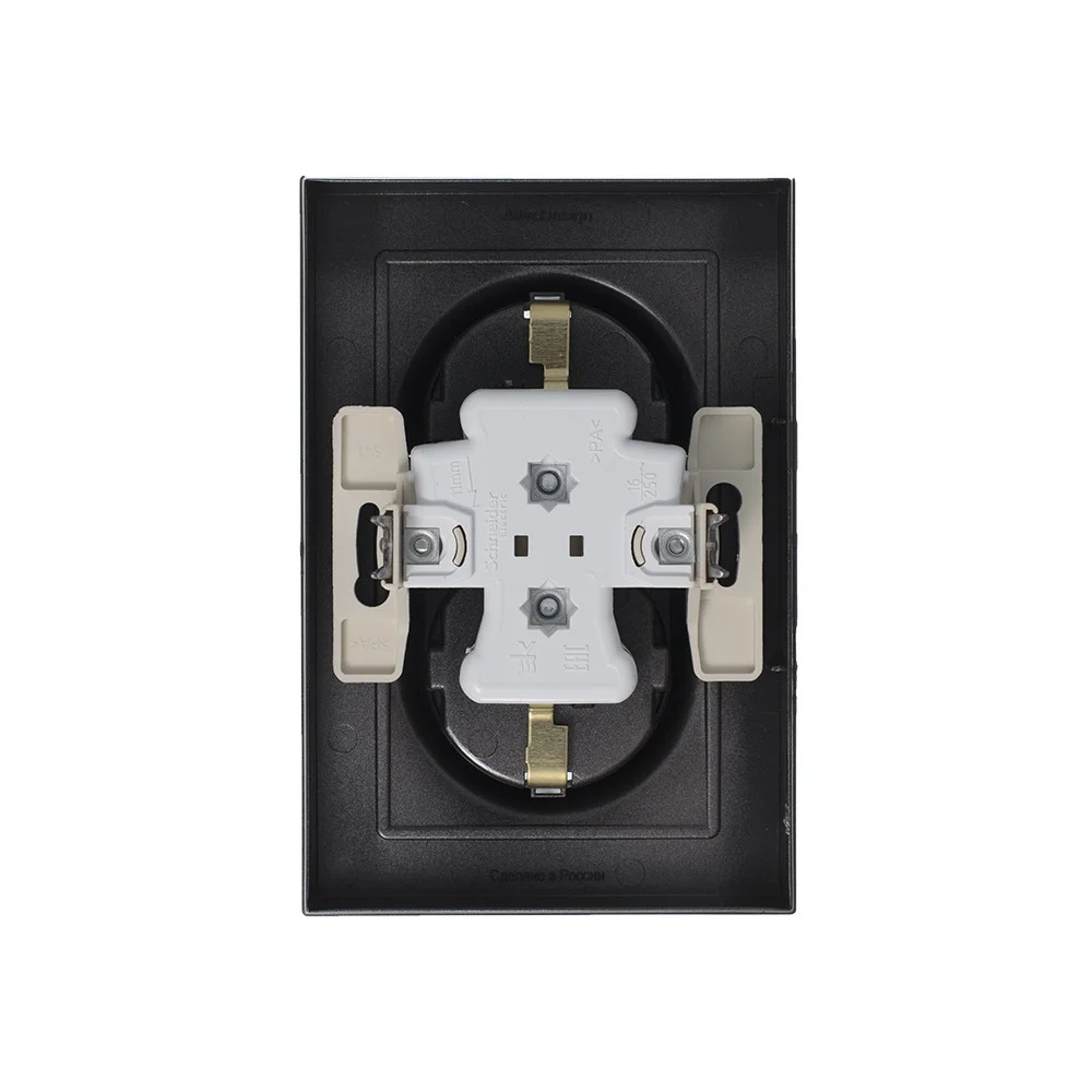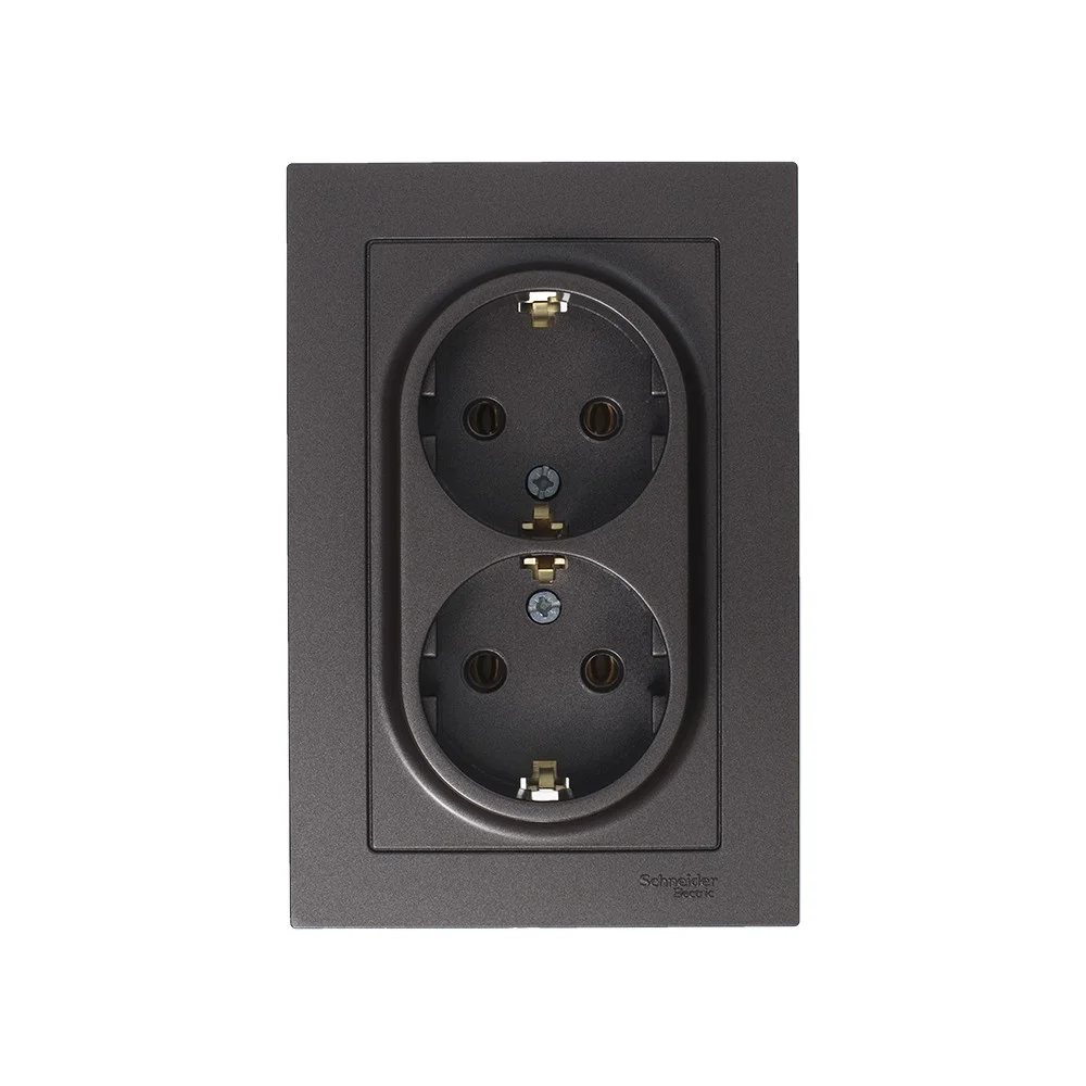 Розетка двойная Systeme Electric (ранее Schneider Electric) серии Glossa (в сборе, цвет антрацит) с заземлением, без шторок подходит для сетей 250 В, на ток 16 А. — Заземляющий контакт обеспечивает дополнительную защиту от удара электрическим током. При наличии заземления электрический потенциал уходит в землю, защищая человека. — Выполнен из материала PС+ASA, стойкого к УФ-излучению и […]