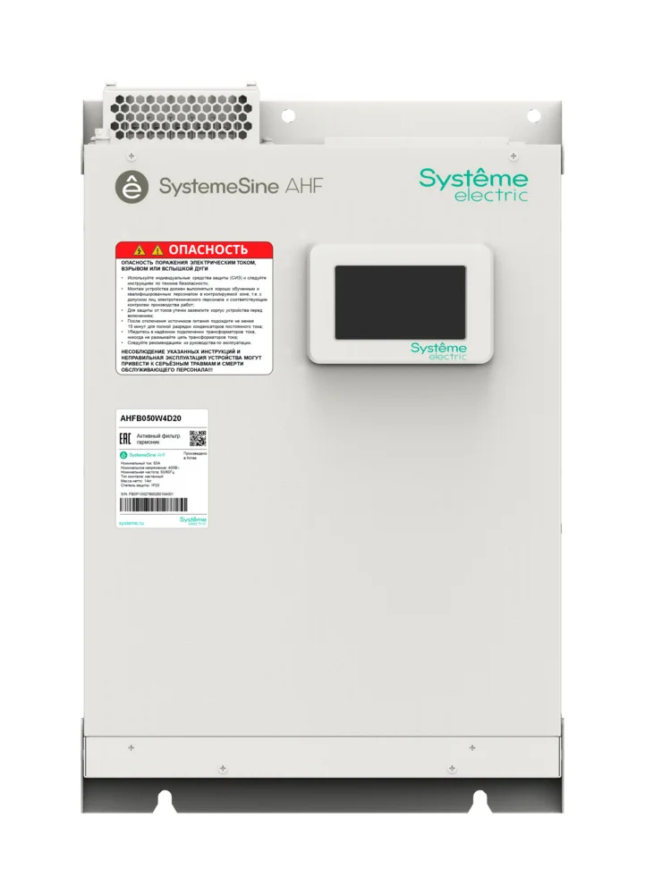 Активный фильтр гармоник торговой марки Systeme Electric серии SystemeSine типа AHF, номинальный ток 50А, номинальное напряжение 400В, степень защиты IP20, навесной модуль с встроенным 4,3 дюймовым ЖК дисплеем