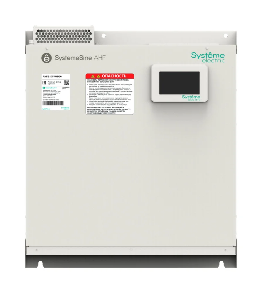 Активный фильтр гармоник торговой марки Systeme Electric серии SystemeSine типа AHF, номинальный ток 100А, номинальное напряжение 400В, степень защиты IP20, навесной модуль с встроенным 4,3 дюймовым ЖК дисплеем