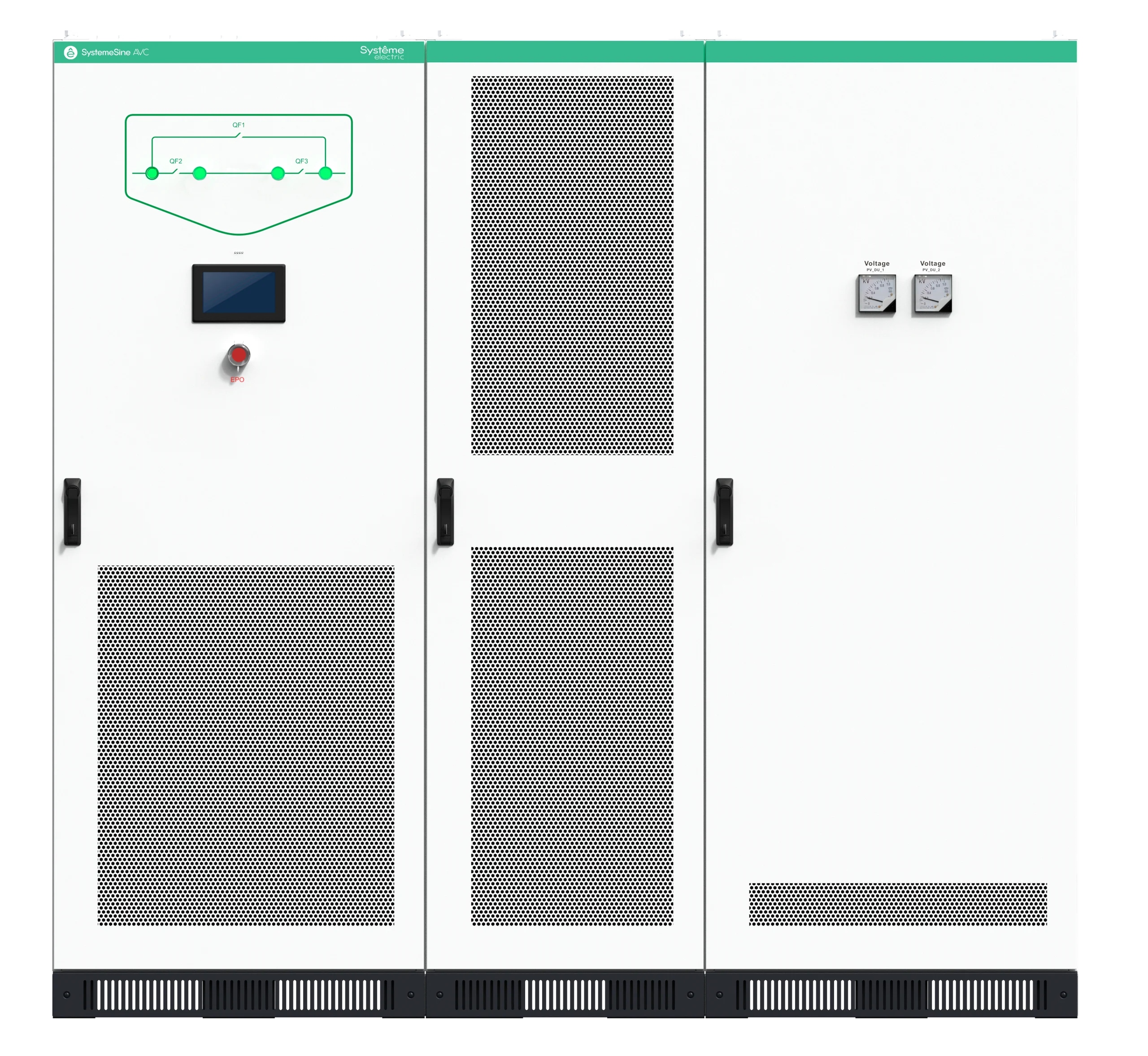 Статический генератор реактивной мощности торговой марки Systeme Electric серии SystemeSine типа SVG, номинальная мощность 100кВАр, номинальное напряжение 400В, степень защиты IP20, навесной модуль с встроенным 4,3 дюймовым ЖК дисплеем