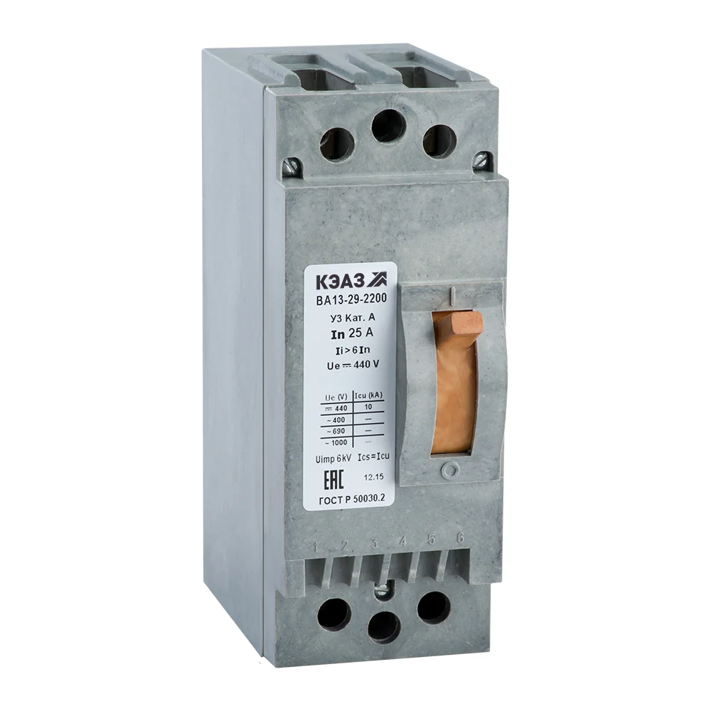 Блочный автоматический 2 полюсный выключатель переменного тока с предельной коммутационной способностью при переменном токе 20 кА на номинальный ток 12.5 А .