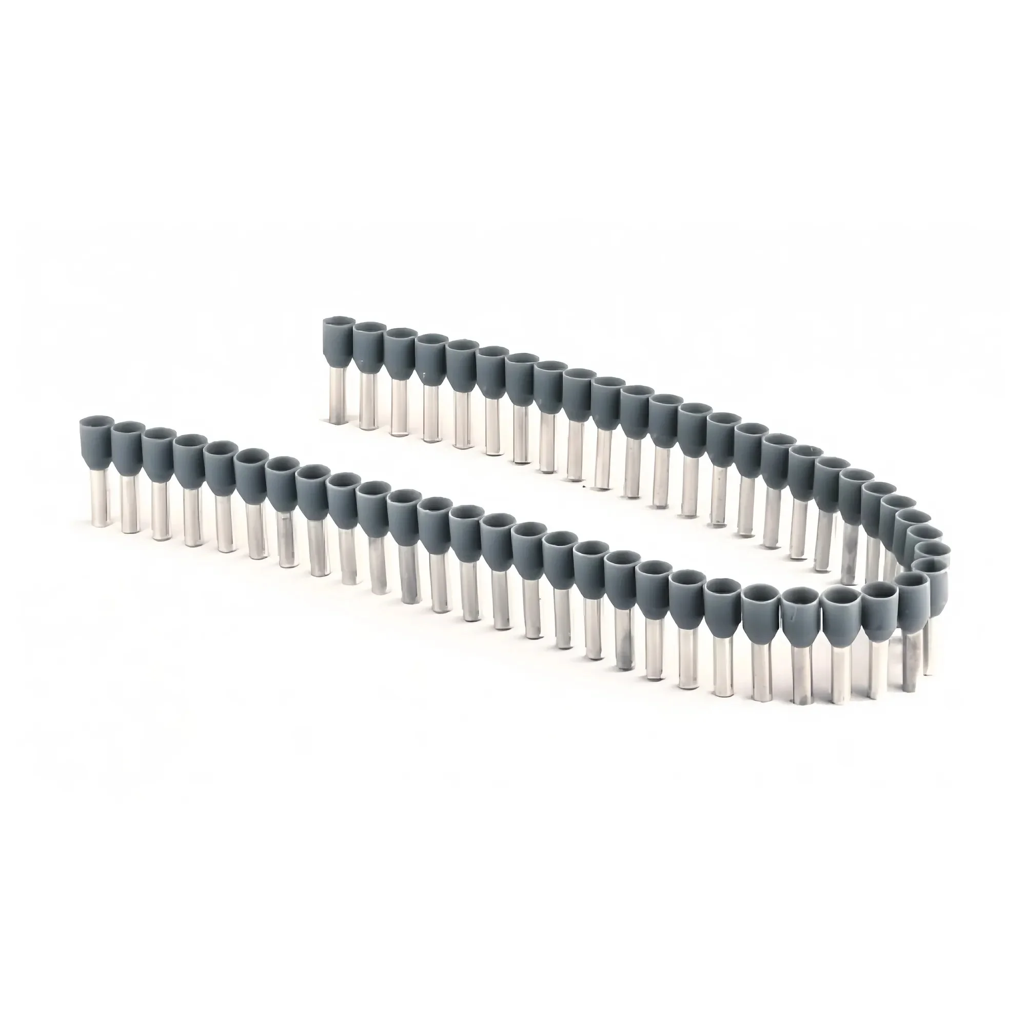Наконечники в ленте предназначены для оконцевания многожильных проводников сечением 1 мм². Длина гильзы составляет 8 мм. Луженое покрытие обеспечивает защиту от коррозии. Материал контактной части – электротехническая медь. Материал изоляции — полипропилен. Не содержит галогенов. Рабочая температура: от –10 до +105 °C, до +120 °С в течение короткого времени. Цвет изолирующей манжеты — красный.