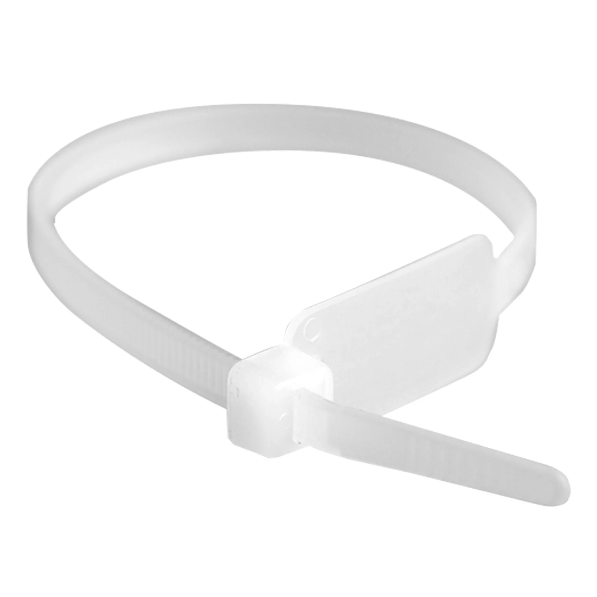 Кабельные хомуты многоразовые предназначены для крепления проводников с возможностью их перегруппировки. Внесенное в механизм замка изменение дает возможность легко размыкать петлю одним нажатием. В составе хомутов не содержатся галогены. Размеры: ширина — 7.6 мм, длина — 250 мм. Цвет — белый.