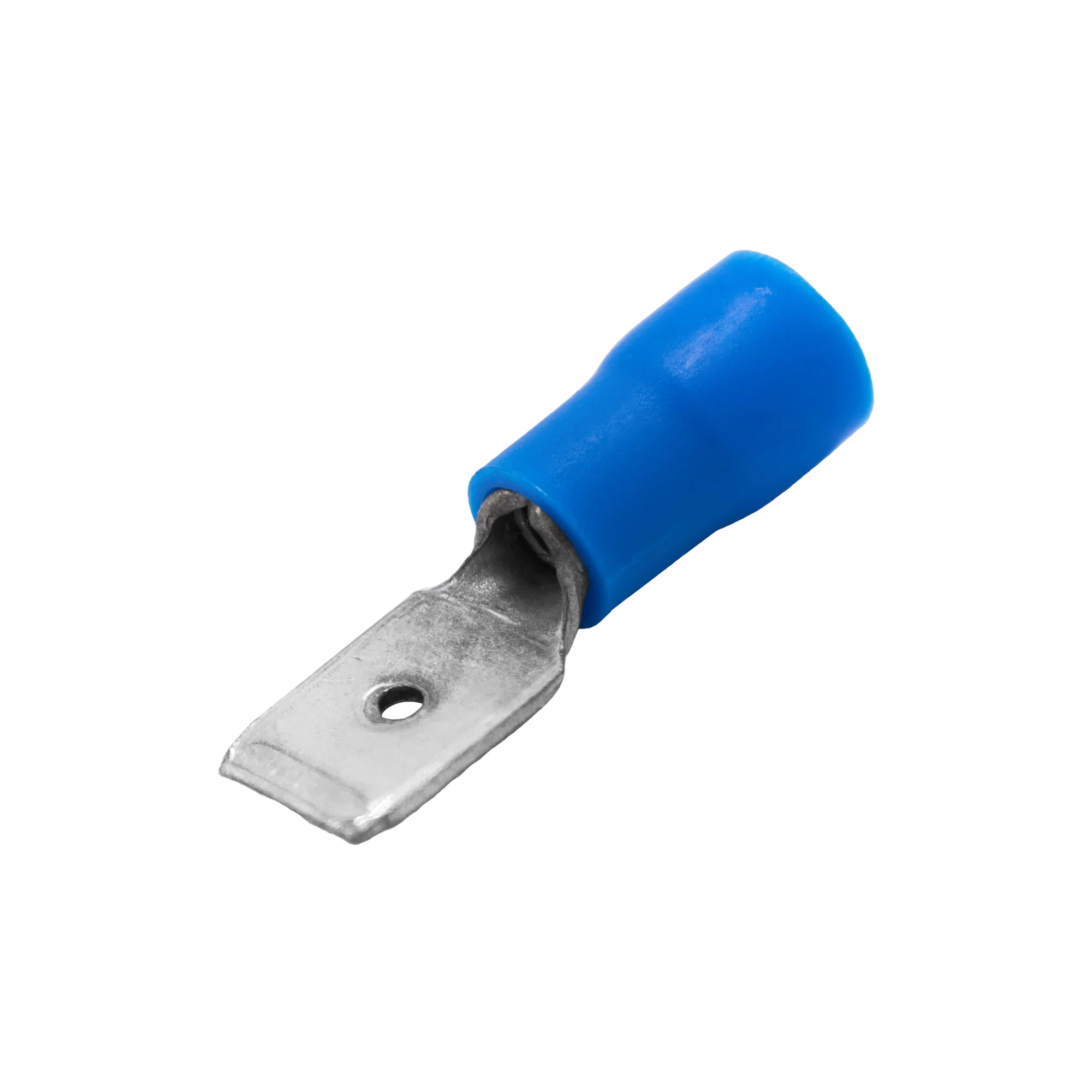 Плоские наконечники быстрого соединения (вилка «папа») предназначены для оконцевания кабеля и проводов с медными жилами сечением от 1.5 до 2,5 мм² в электрических цепях переменного и постоянного тока, напряжение до 600 В. Материал контактной части – электротехническая медь, материал изоляции — ПВХ. Луженое покрытие обеспечивает защиту от коррозии. Фланец изолирован. Номинальный размер соединителя 4,8×0,8 мм². […]