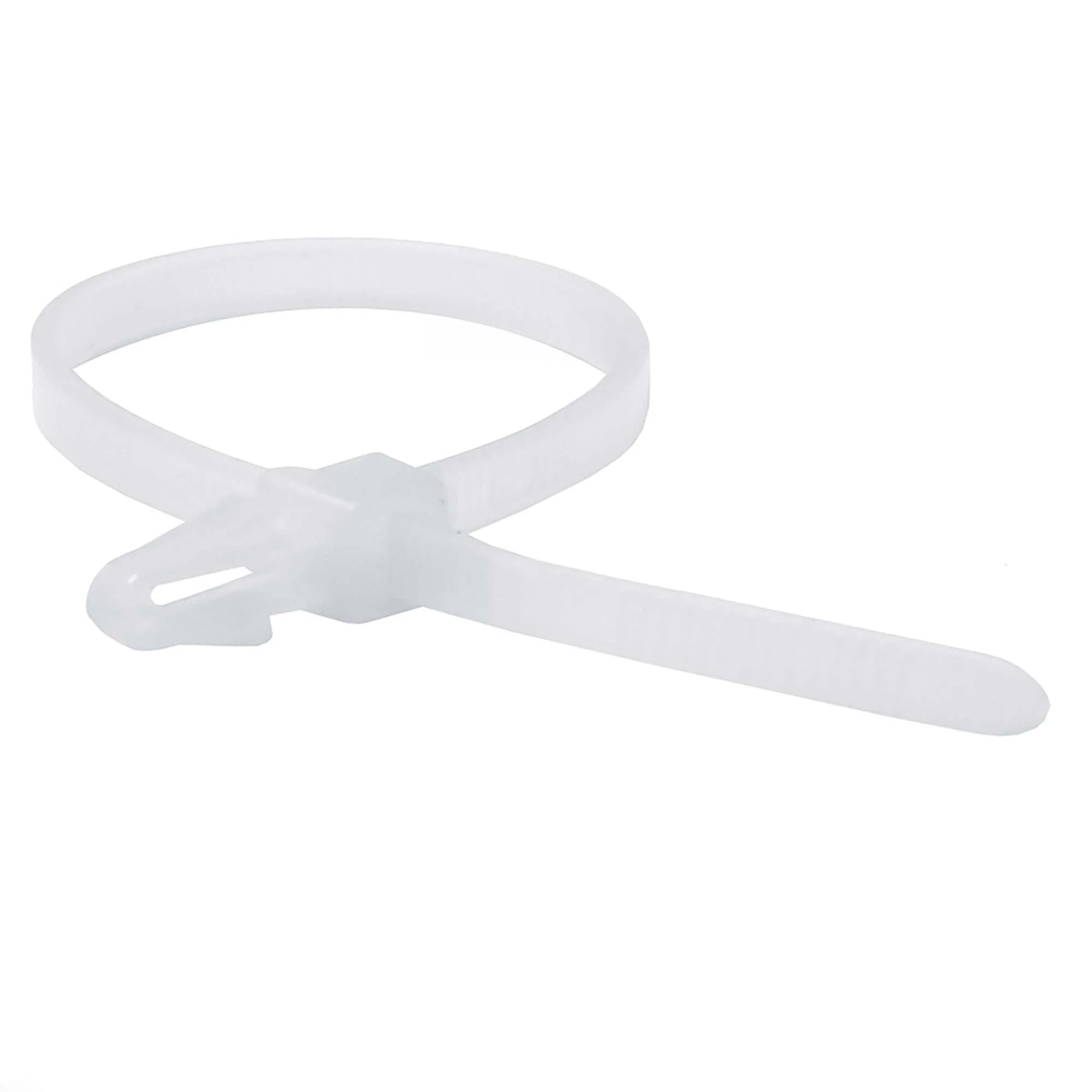 Кабельные хомуты многоразовые предназначены для крепления проводников с возможностью их перегруппировки. Конструктивная особенность замка дает возможность легко размыкать петлю одним нажатием. В составе хомутов не содержатся галогены. Размеры: ширина — 7.6 мм, длина — 250 мм. Цвет — черный.