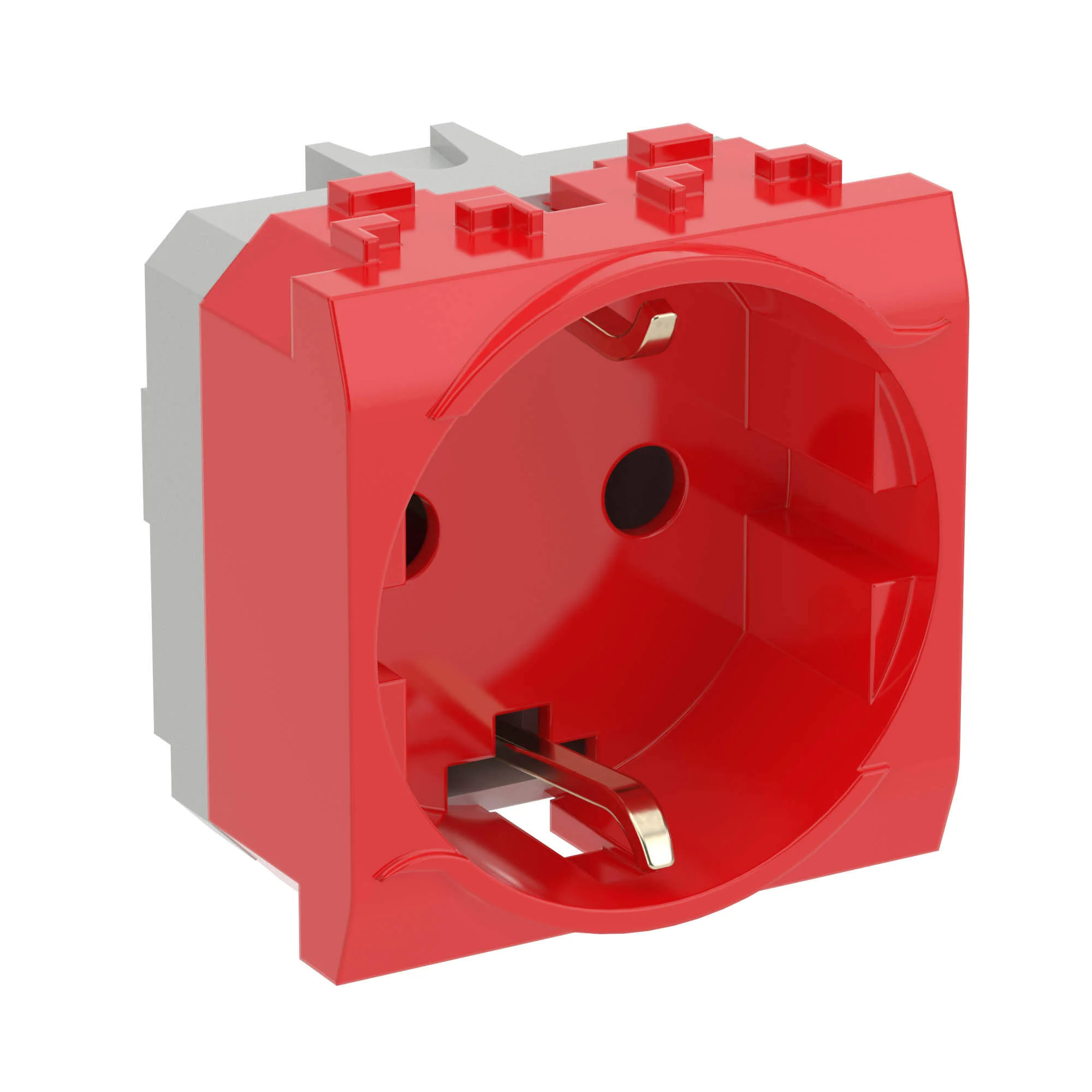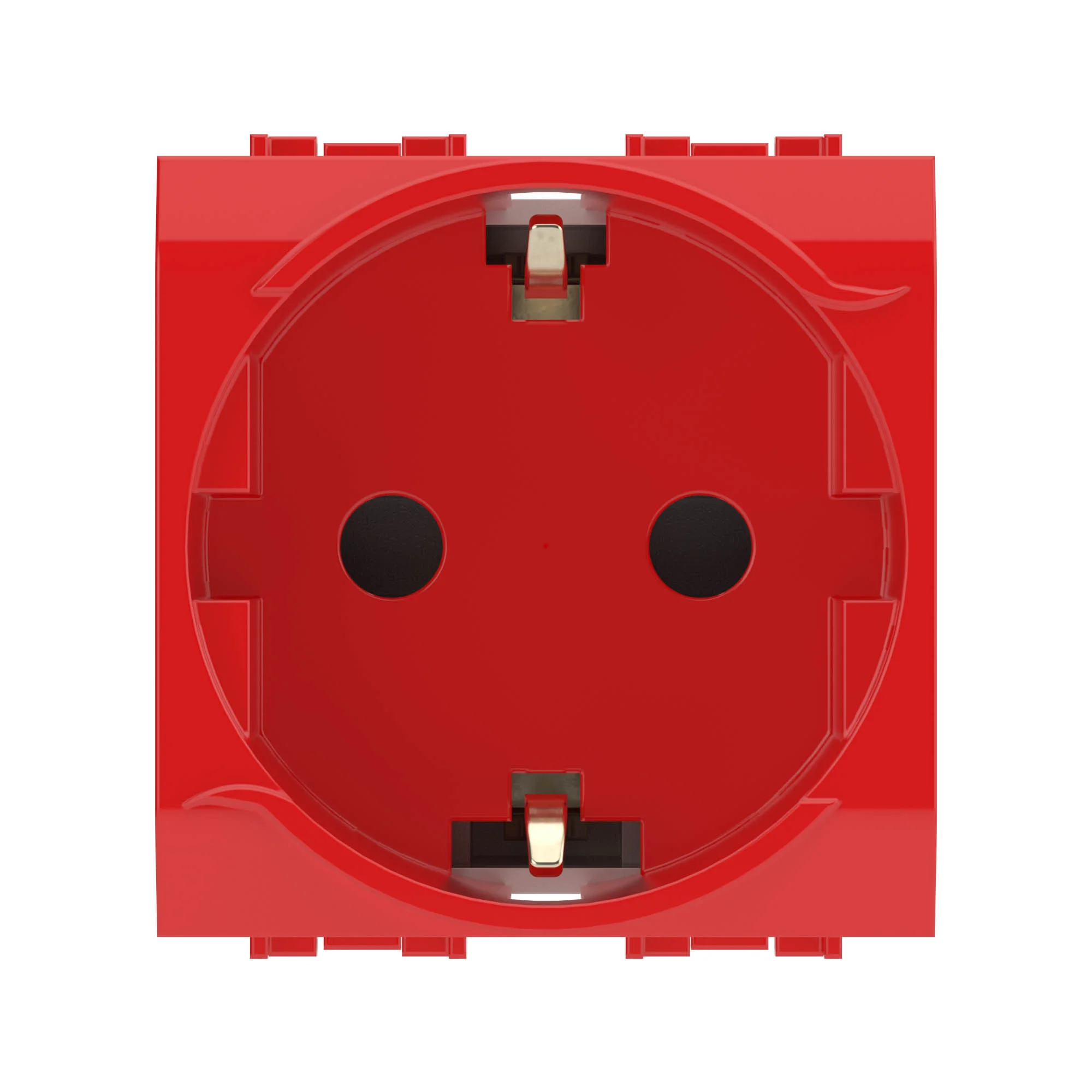 DKC Brava Электрическая розетка, с заземлением, со шторками, красная, 2 мод.