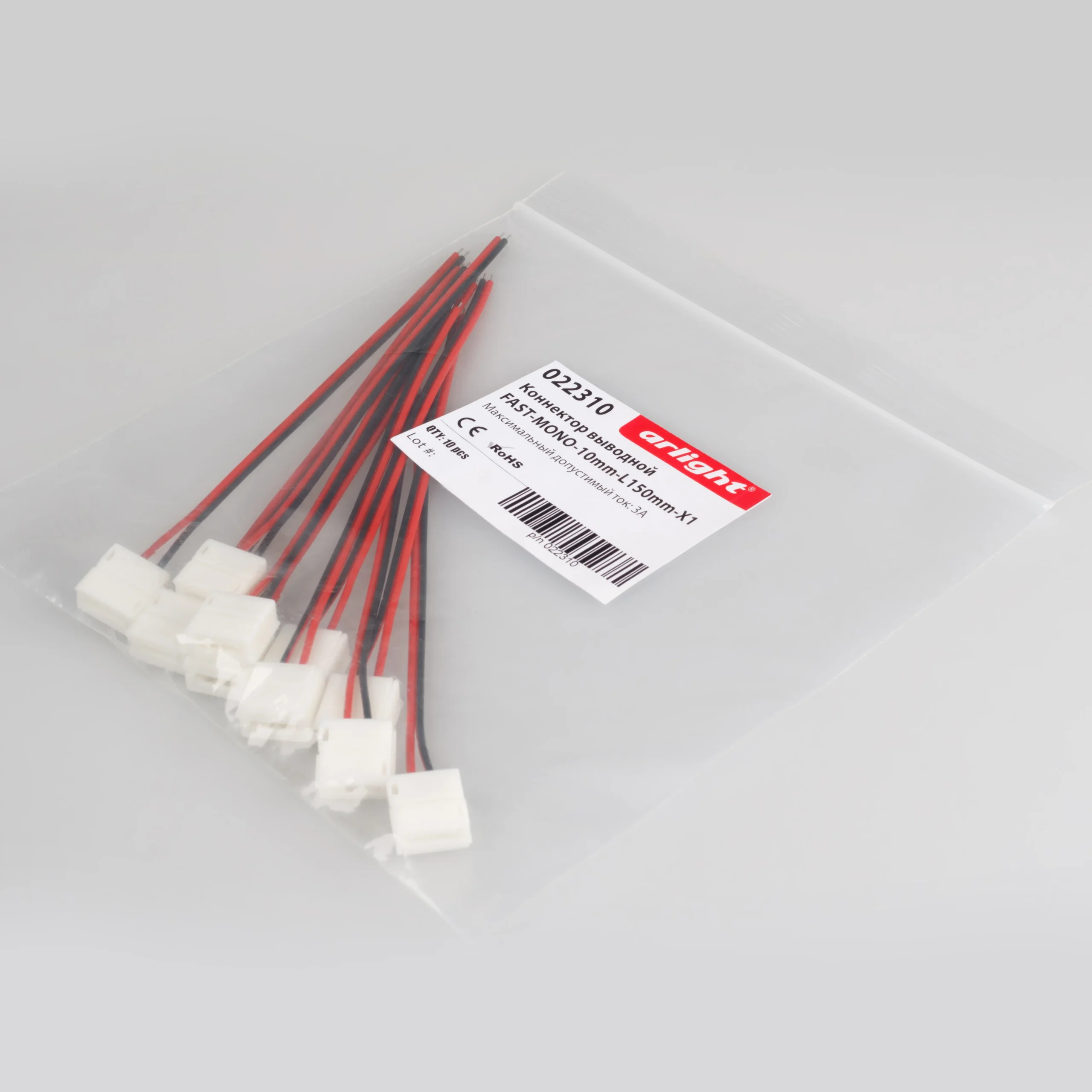 Одиночный коннектор с проводом 15см для подключения питания к ГЕРМЕТИЧНЫМ светодиодным одноцветным лентам шириной 10мм. Максимальный допустимый ток 3А, напряжение до 50 В. Цена за 1шт. Кратность заказа поставщику: 10 шт.