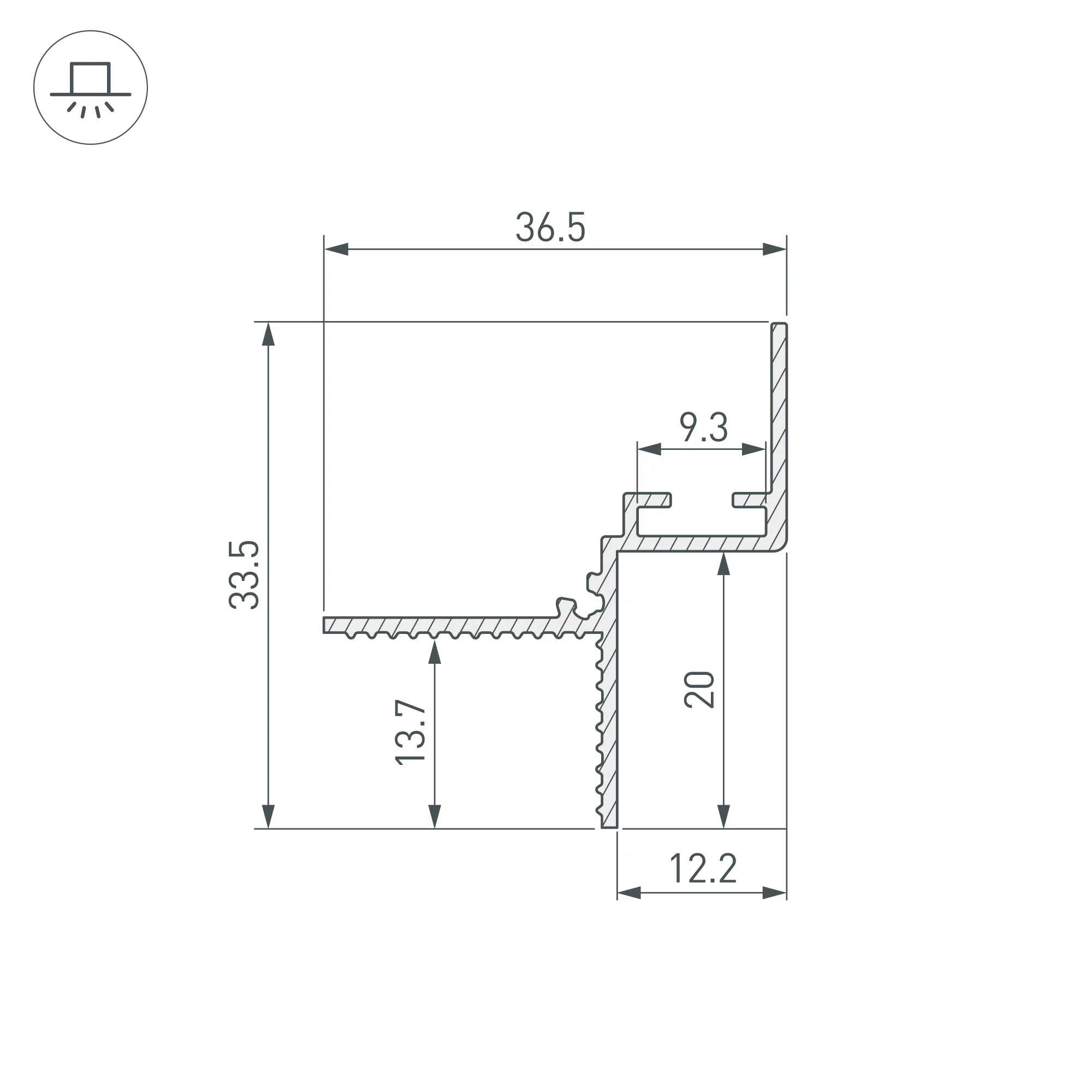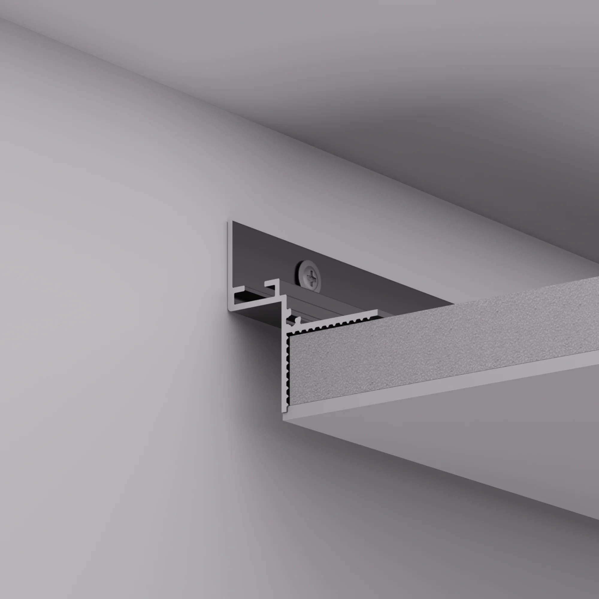Алюминиевый анодированный встраиваемый профиль. Цвет — черный. Теневой несветовой профиль для создания зазора 12,2 мм между поверхностью потолка и стены. Создает эффект парящего потолка с четким контуром и небольшой тенью по периметру помещения. Такое решение визуально расширяет пространство и идеально подходит для современного минималистичного интерьера. Габаритные размеры (L×W×H): 3000х36,5х33,5 мм. Аксессуары приобретаются отдельно. Цена за […]