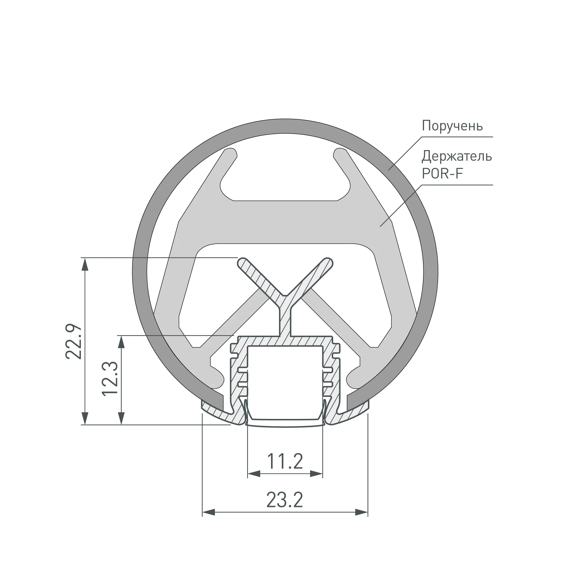 Алюминиевый анодированный профиль с фланцем для подсветки круглых поручней диаметром 42 или 49мм. Габаритные размеры (L×W×H): 1050x23x23 мм. Ширина площадки для ленты 11 мм. Экраны, заглушки и другие аксессуары приобретаются отдельно. Цена за 1 шт.