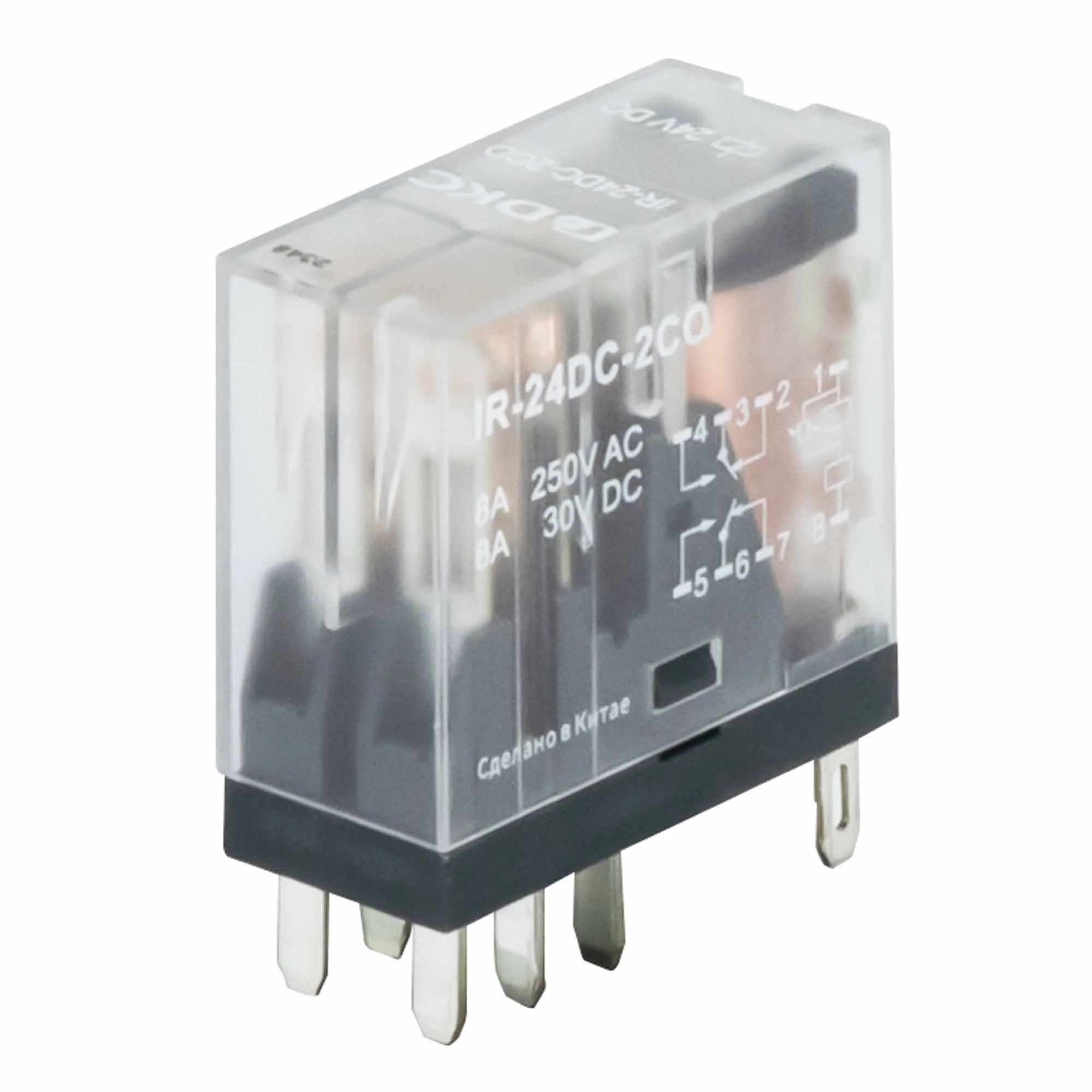 DKC Реле миниатюрное промышленное, 2CO, ком. ток 8А, AgSnO2, напряжение 24V DC, опция: светодиод