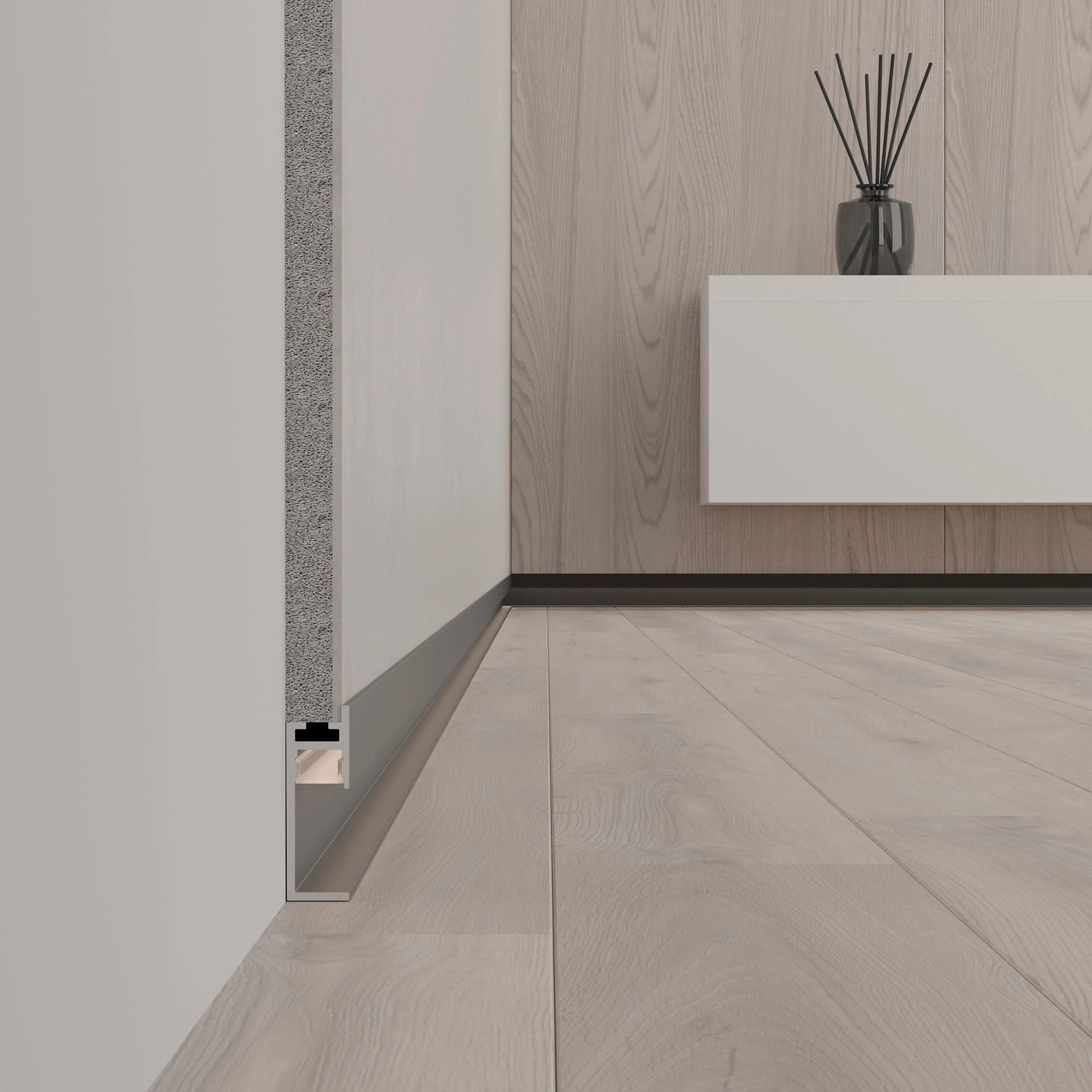 Алюминиевый профиль-плинтус для светодиодных лент и линеек. Цвет — черный RAL9005 (порошковая окраска). Габаритные размеры (L×W×H): 2000×11,2×34,4 мм. Ширина площадки для ленты 8,2 мм. Аксессуары приобретаются отдельно. Цена за метр. Кратность заказа поставщику: 2 м.