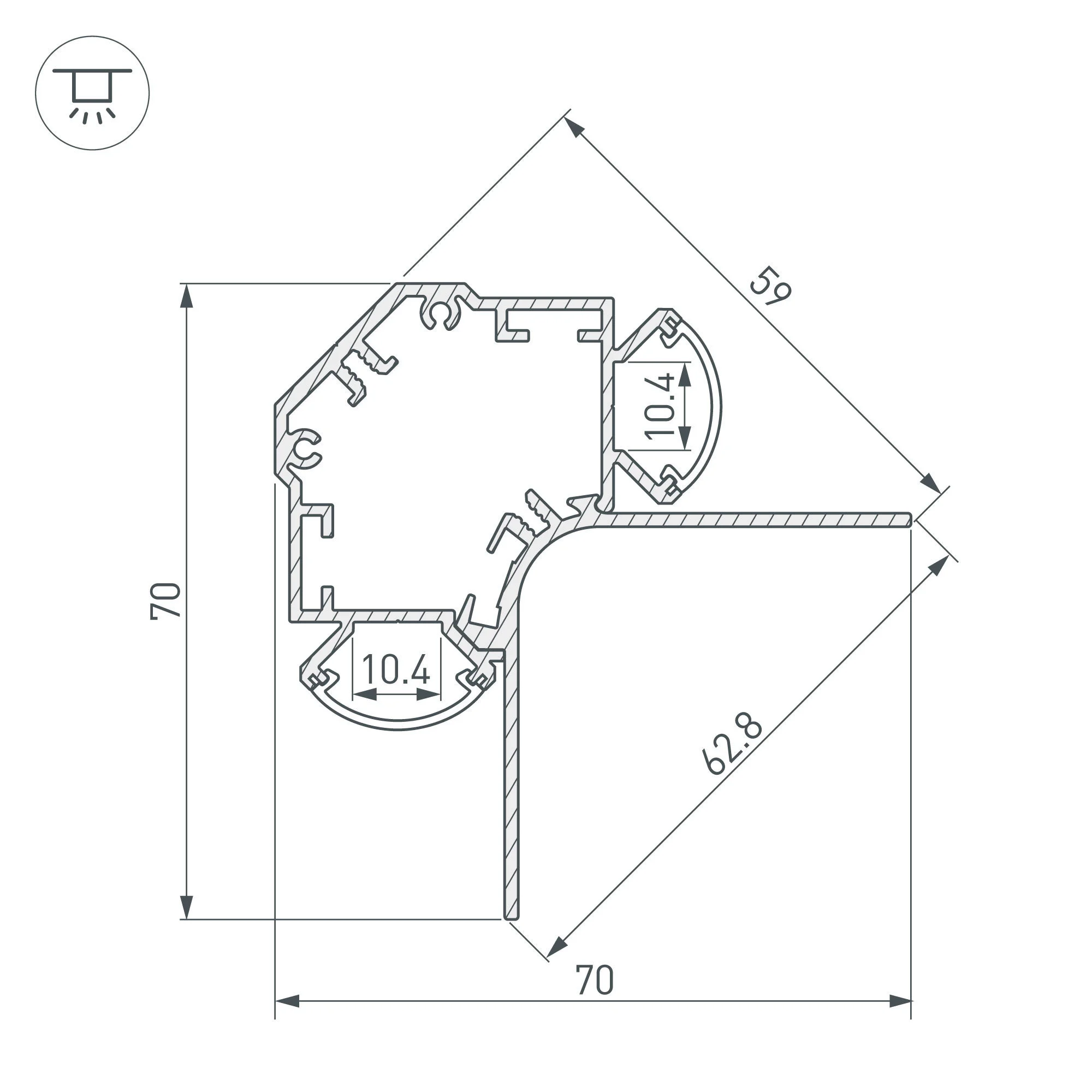 Под заказ от 24 м. Алюминиевый накладной профиль для светодиодных лент и линеек с двусторонним свечением для создания эффекта «Отраженного света». Цвет-белый RAL9003 (порошковая окраска). Габаритные размеры (L×W×H): 2000x70x70 мм. Ширина площадок для лент 10,4 мм. Экраны, заглушки и другие аксессуары приобретаются отдельно. Цена за 1 метр. Кратность заказа поставщику: 2 м.