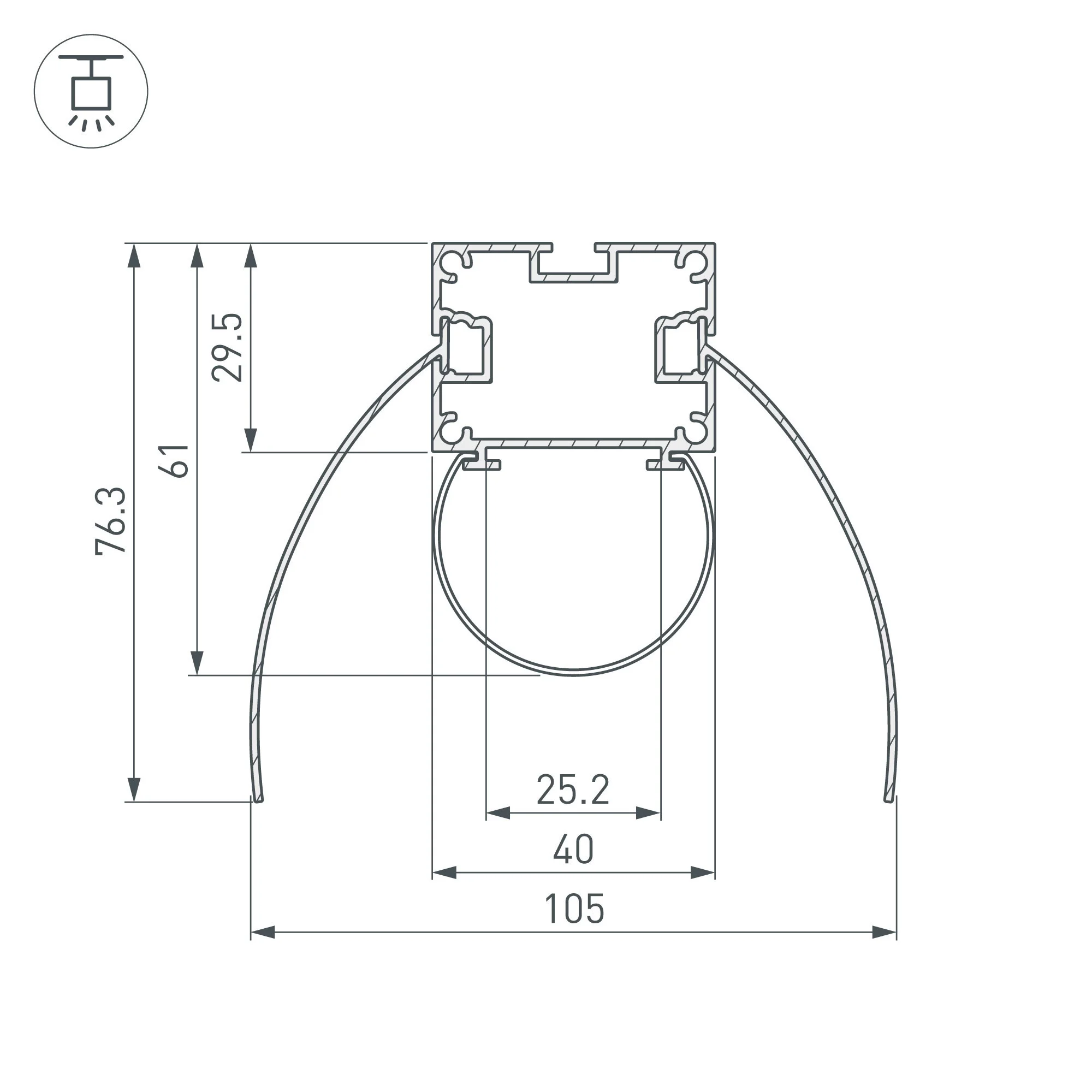Алюминиевый анодированный подвесной профиль для светодиодных лент и линеек. Возможность регулировки угла излучения в трёх положениях. Состоит из трёх частей — профиля и двух бленд (алюминиевых пластин). Габаритные размеры (L×W×H): 2000x154x61 мм. Ширина площадки для ленты 25,2 мм. Аксессуары приобретаются отдельно. Цена за 1м. Кратность заказа поставщику: 2 м.
