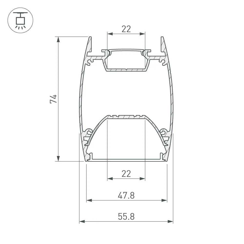 Алюминиевый анодированный подвесной профиль для светодиодных лент и линеек с двусторонним свечением для создания эффекта «отраженного света». Габаритные размеры (L×W×H): 2000×55,8×74мм. Состоит из двух частей — профиля и съемного основания (площадки) для ленты. Ширина площадок для лент 22 мм. Отсек для БП 50х26мм. Экраны, заглушки и другие аксессуары приобретаются отдельно. Цена за 1 метр. Кратность […]