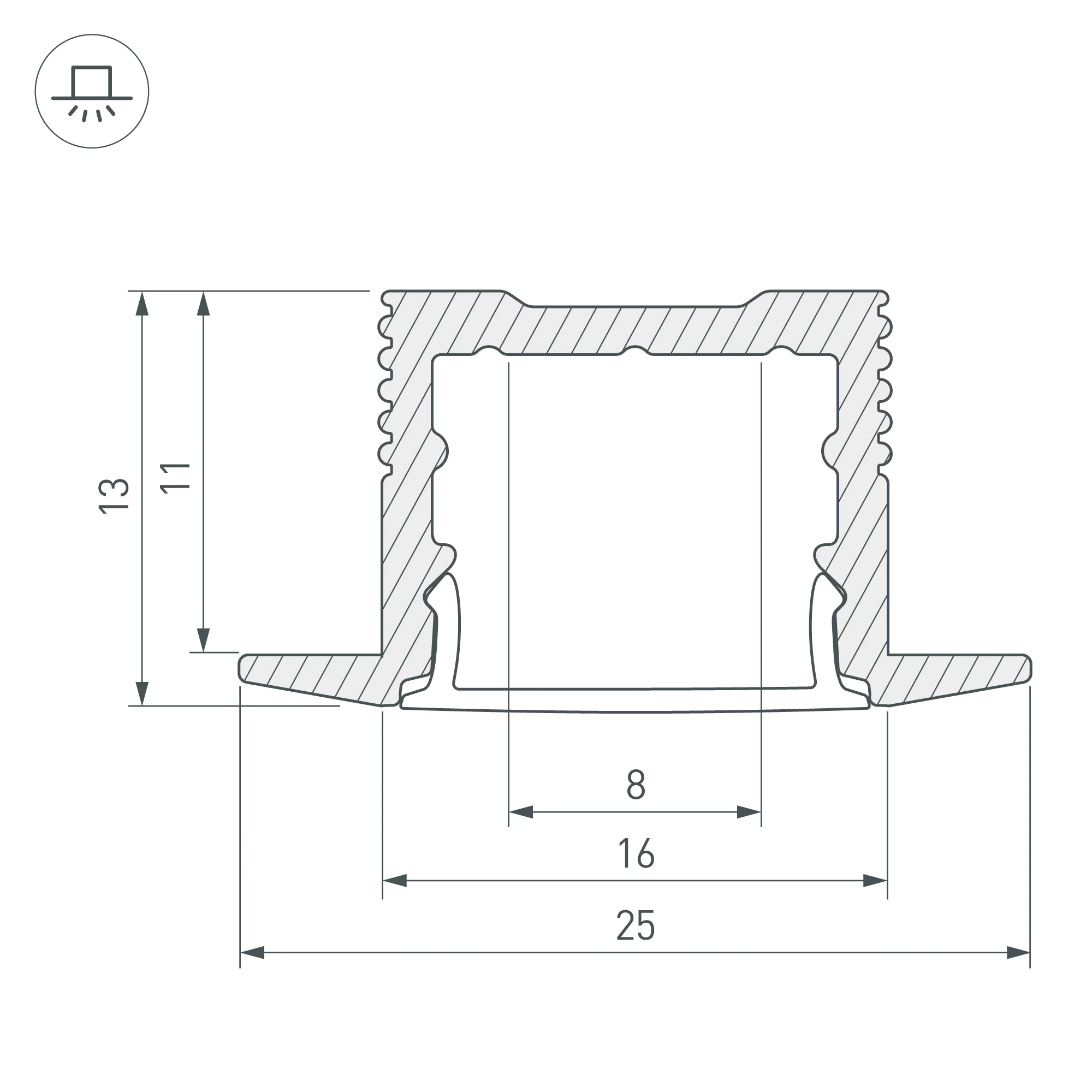 Алюминиевый профиль для светодиодных лент и линеек. Цвет — черный RAL9005 (порошковая окраска). Габаритные размеры (L×W×H): 2000x25x13 мм, паз для установки 16 мм. Ширина площадки для ленты 12 мм. Экраны, заглушки и другие аксессуары приобретаются отдельно. Цена за 1 метр. Кратность заказа поставщику: 2 м.