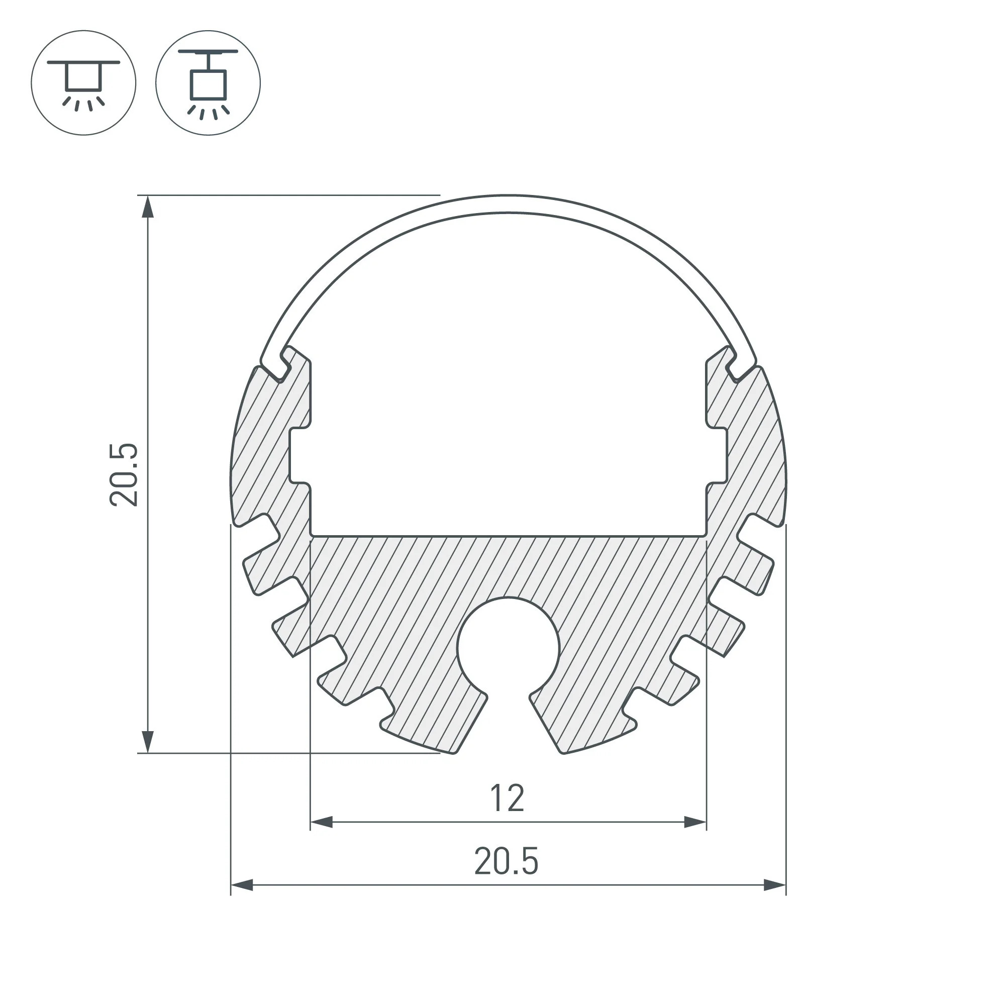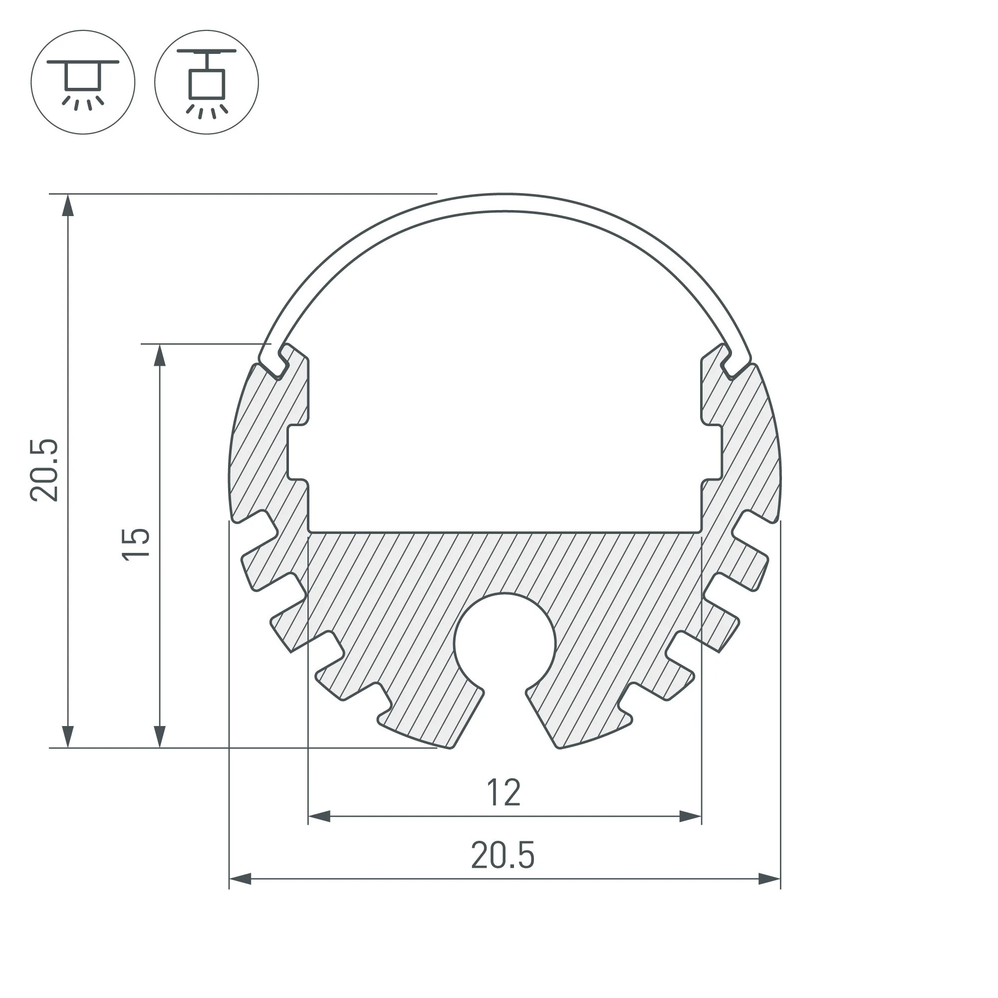 Алюминиевый анодированный круглый профиль для светодиодных лент и линеек. Габаритные размеры профиля (L×W×H): 2000×20,5×15мм. Габаритные размеры профиля с экраном (L×D): 2000xD20,5 мм. Ширина площадки для ленты 12 мм. Экраны, заглушки и другие аксессуары приобретаются отдельно. Цена за 1 метр. Кратность заказа поставщику: 2 м.