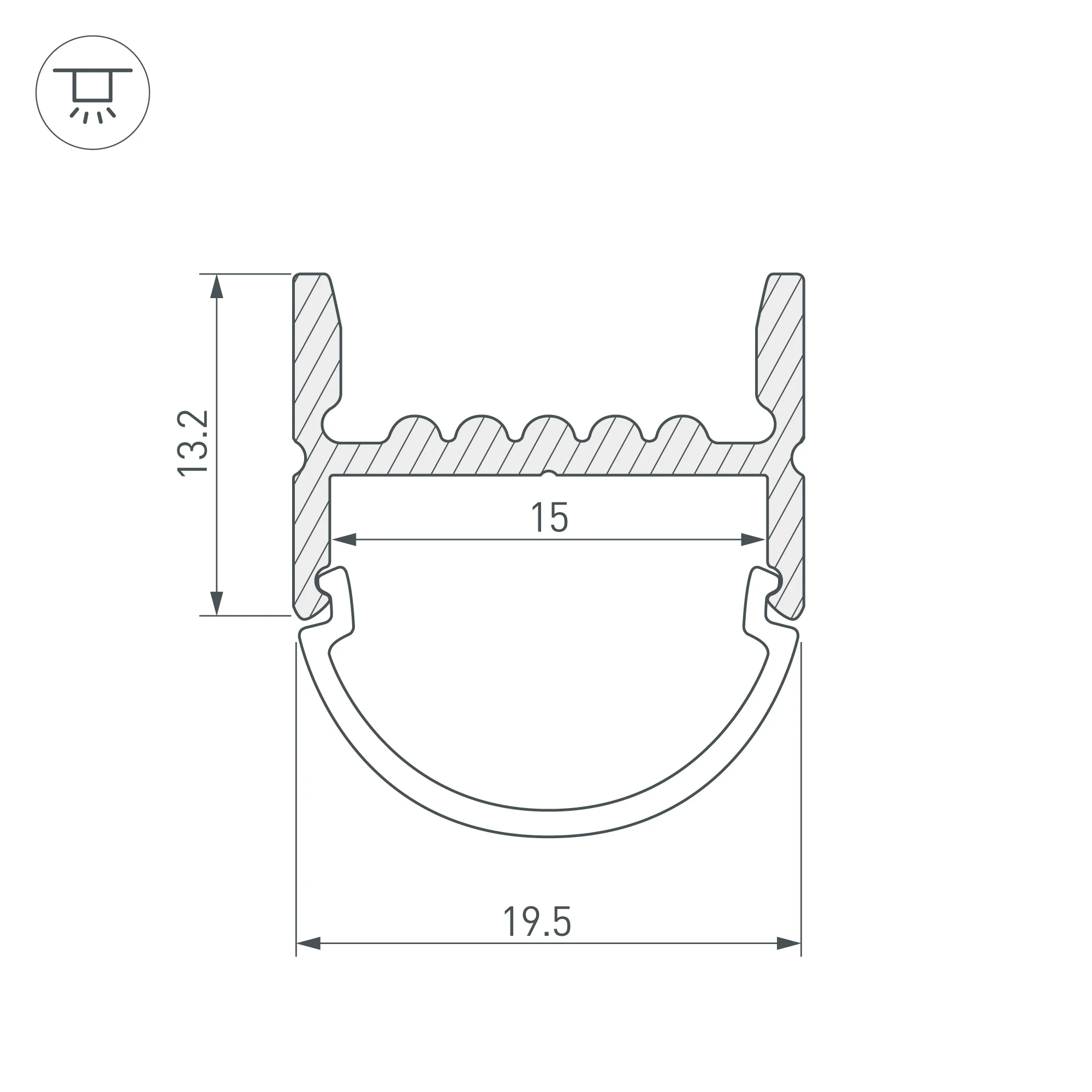 Алюминиевый анодированный накладной профиль для светодиодных лент и линеек. Большой выбор круглых, квадратных, фигурных экранов и заглушек. Габаритные размеры (L×W×H): 2000×19,5×13,2 мм. Ширина площадки для ленты 15 мм. Экраны, заглушки и другие аксессуары приобретаются отдельно. Цена за 1 метр. Кратность заказа поставщику: 2 м.
