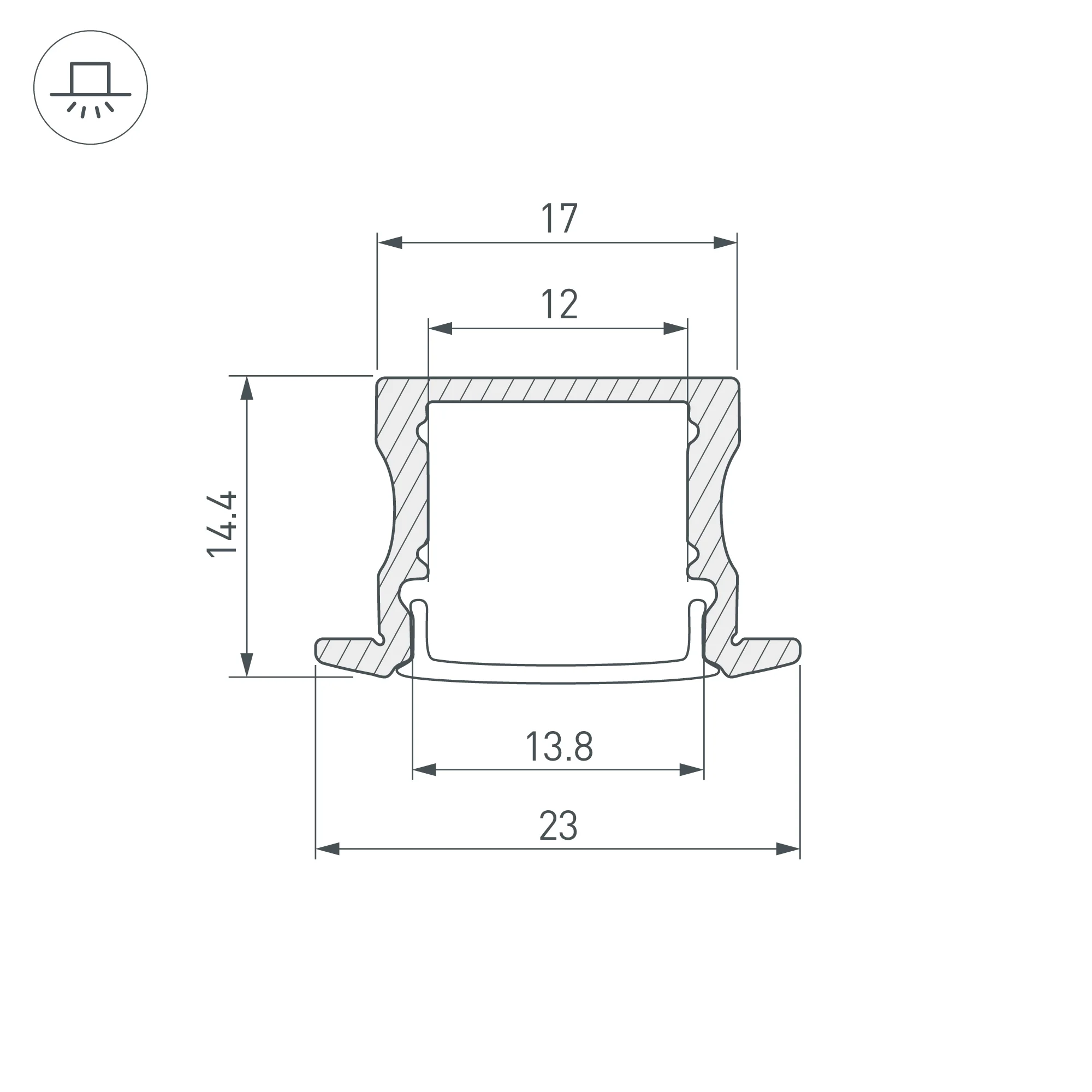 Алюминиевый анодированный встраиваемый профиль для светодиодных лент и линеек. Цвет — золотой. Габаритные размеры (L×W×H): 2000x23x14,4 мм. Паз для установки 17 мм. Ширина площадки для ленты 12 мм. Экраны, заглушки и другие аксессуары приобретаются отдельно. Цена за 1 метр. Кратность заказа поставщику: 2 м.