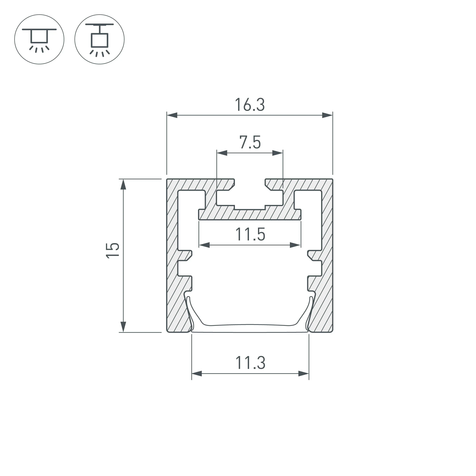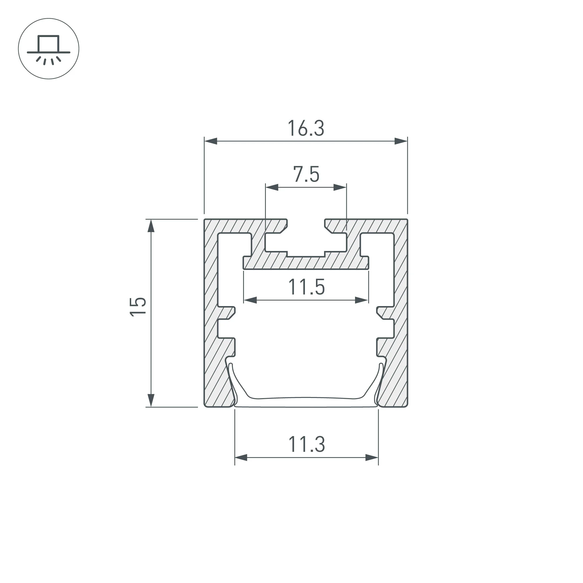 Алюминиевый анодированный профиль для светодиодных лент и линеек. Совместим с профилем 035014. Габаритные размеры (L×W×H): 2000×16,3×15 мм. Ширина площадки для ленты 11,5 мм. Экраны, заглушки и другие аксессуары приобретаются отдельно. Цена за 1 метр. Кратность заказа поставщику: 2 м.