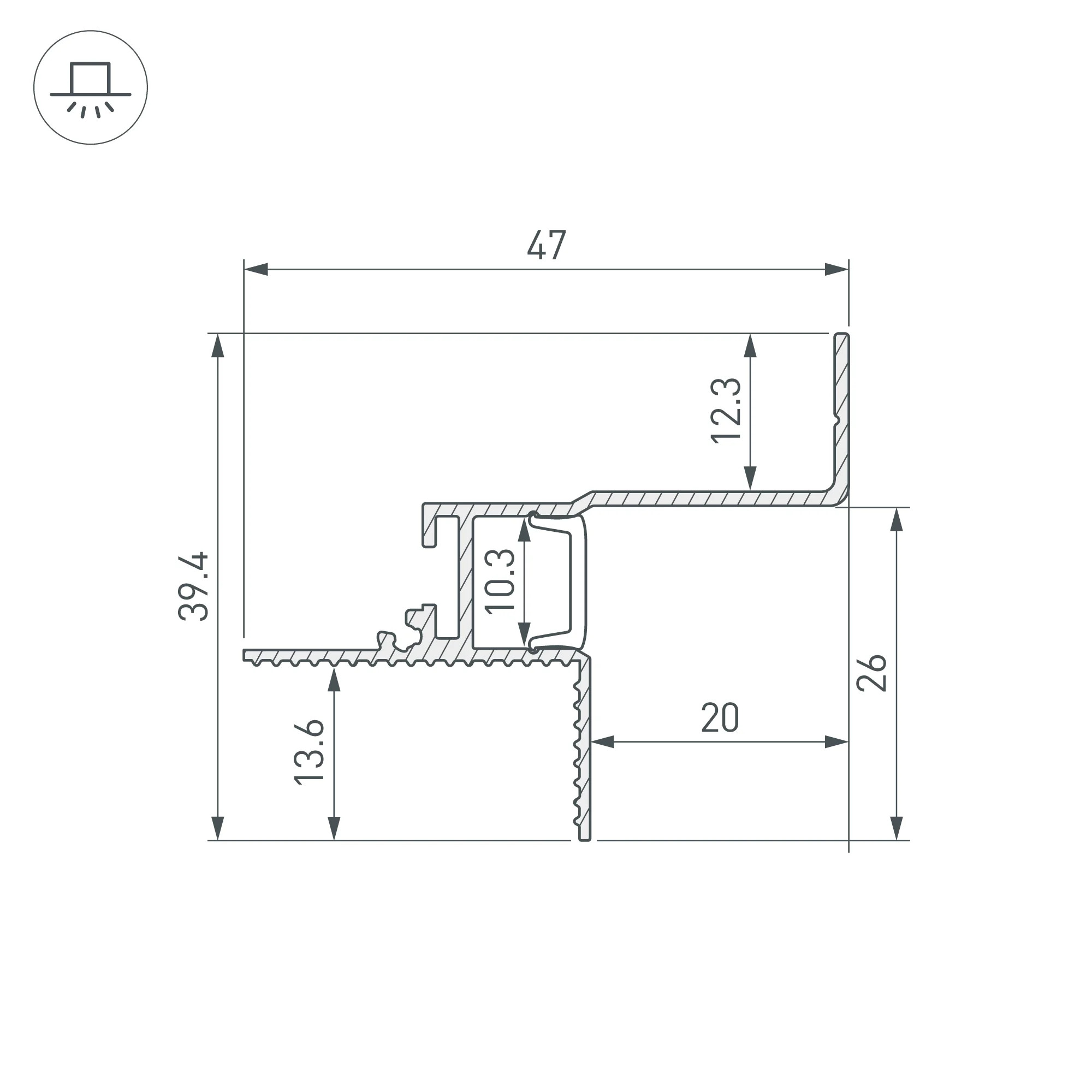 Алюминиевый встраиваемый профиль для светодиодных лент и линеек. Цвет-белый RAL9003 (порошковая окраска). Профиль для создания эффекта парящего потолка с мягким свечением по периметру помещения. Габаритные размеры (L×W×H): 3000х47х39,4 мм. Ширина площадки для ленты 10,3 мм. Ширина зазор между потолком и стеной — 20 мм. Экраны, заглушки и другие аксессуары приобретаются отдельно. Цена за 1 метр. […]