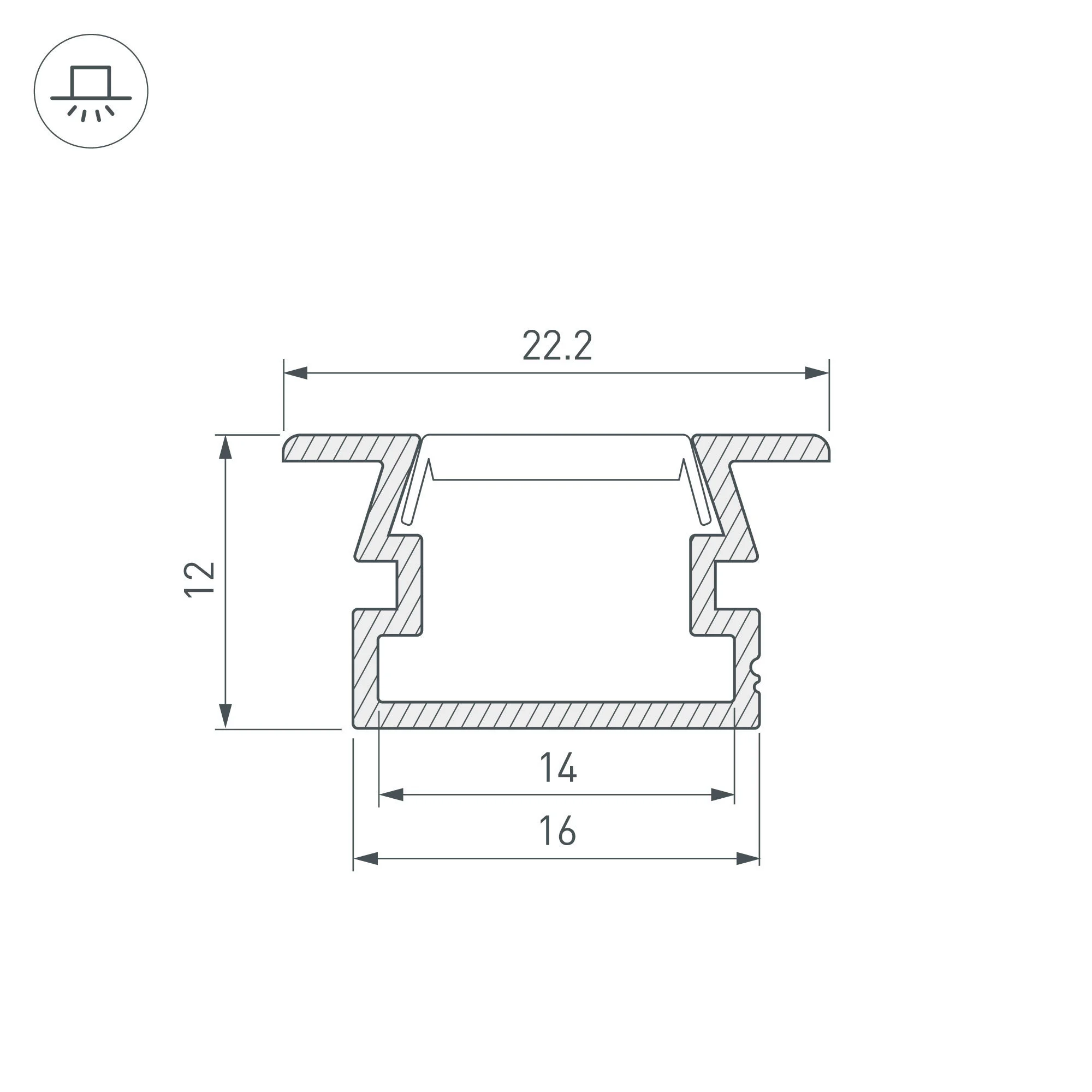Алюминиевый анодированный профиль с фланцем, для светодиодных лент и линеек. Габаритные размеры (L×W×H): 3000×22,2×12 мм. Ширина площадки для ленты 14 мм. Экраны, заглушки и другие аксессуары приобретаются отдельно. Цена за 1 метр. Кратность заказа поставщику: 3 м.