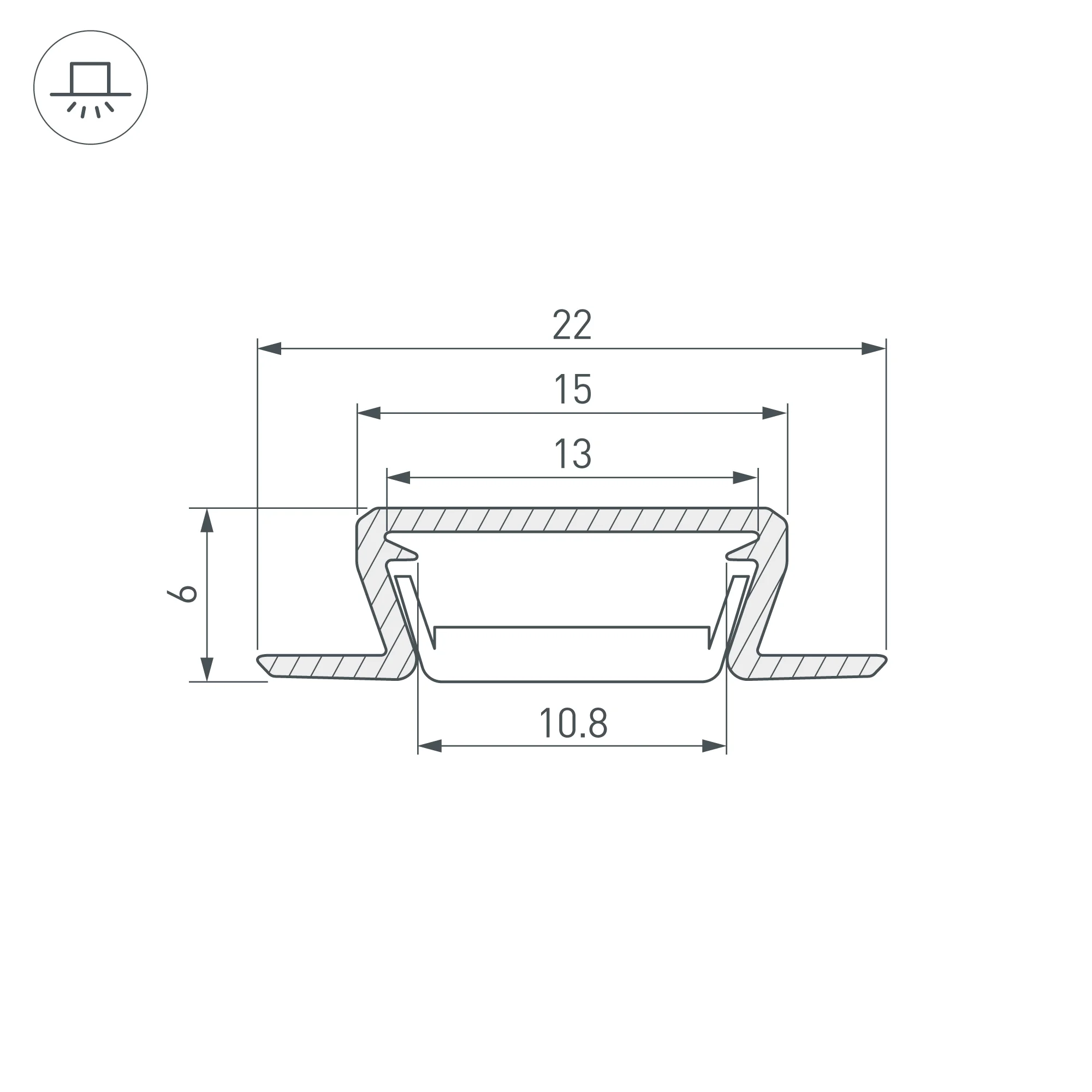 Алюминиевый анодированный профиль с фланцем, для светодиодных лент и линеек. Габаритные размеры (L×W×H): 3000x22x6 мм. Ширина площадки для ленты 10,8 мм. Экраны, заглушки и другие аксессуары приобретаются отдельно. Цена за 1 метр. Кратность заказа поставщику: 3 м.