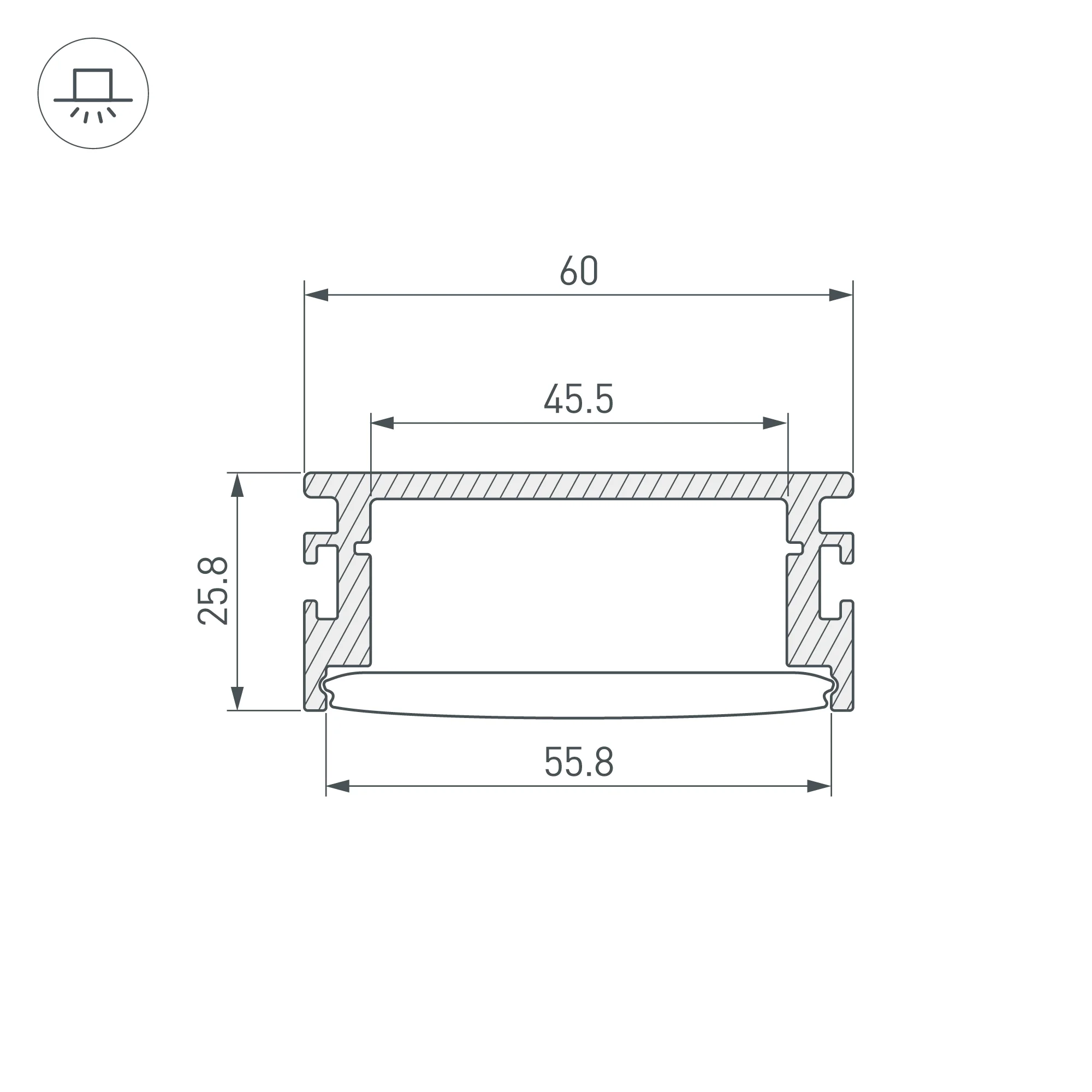 Алюминиевый анодированный встраиваемый профиль для пола. Цвет — черный. Габаритные размеры (L×W×H): 3000x60x25,8 мм. Ширина площадки для ленты 45,5 мм. Заглушки и экран приобретаются отдельно. Цена за 1 метр. Кратность заказа поставщику: 3 м.