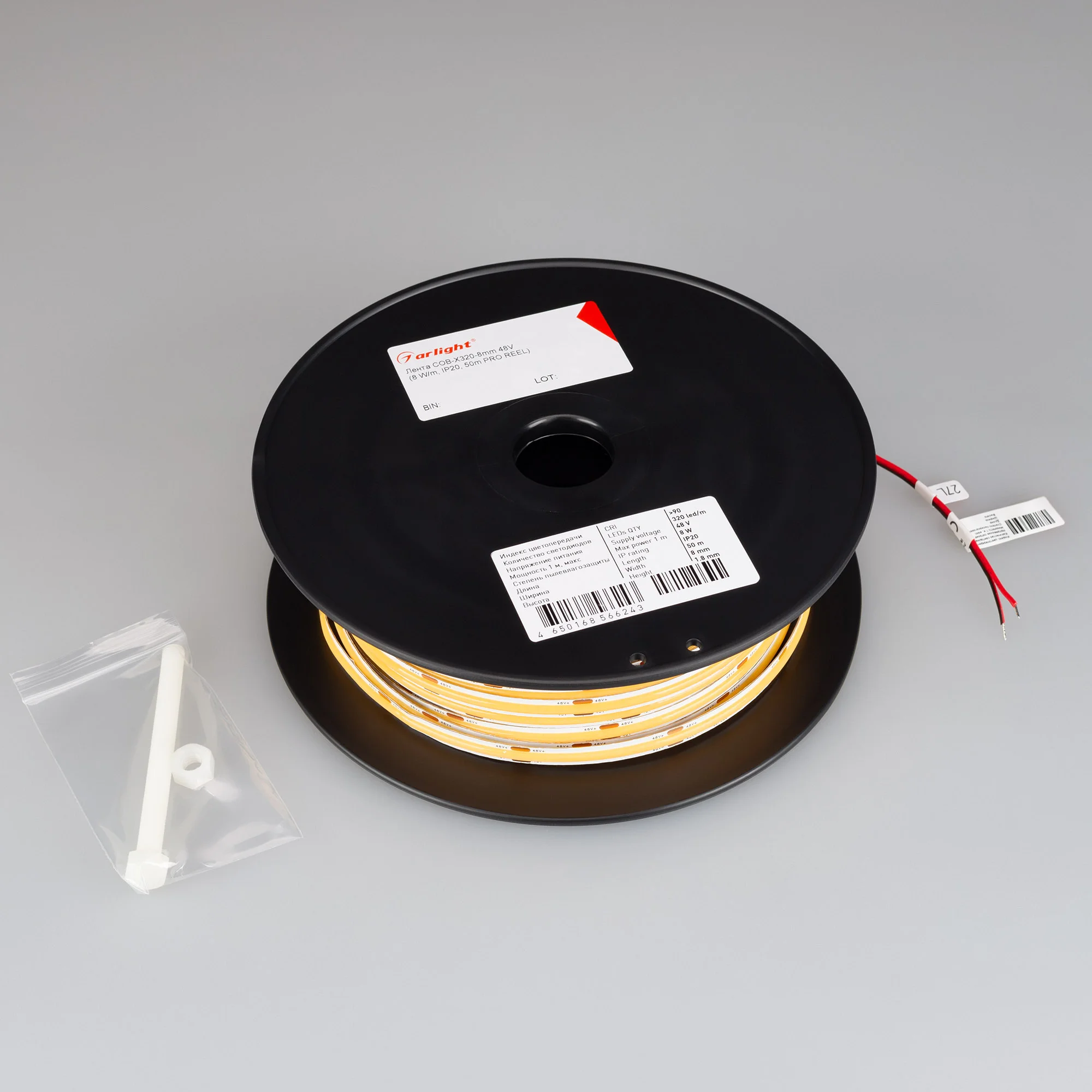 Светодиодная лента сплошного свечения COB серии X320 (монтажная бобина 50 м). Светодиоды CSP, 320 шт/м, белая плата шириной 8 мм, скотч 3M. Цвет БЕЛЫЙ 6000K, индекс цветопередачи CRI>90, угол 160°. Питание 48 В, мощность 8 Вт/м (400 Вт на 50 м), угол 160°. Размеры 50000х8х1.8 мм. Мин. отрезок 50 мм. Цена за 1 м. Подключение […]