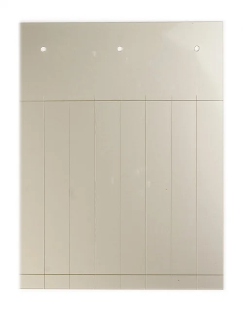 Табличка полужесткая из ПВХ с клейким основанием для маркировки модульного оборудования для печати на принтере MarkTC и MarkTC Plus. Совместимый адаптер – PLT01. Класс горючести по UL94 — V0. Температура эксплуатации от –30 до +60 °С. Размер 107.5 х 15 мм, 6 тегов на пластине, 10 пластин в упаковке, цвет металлик.