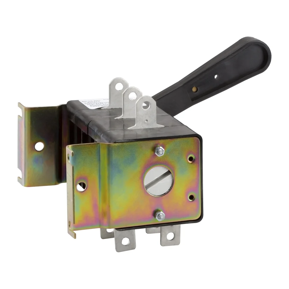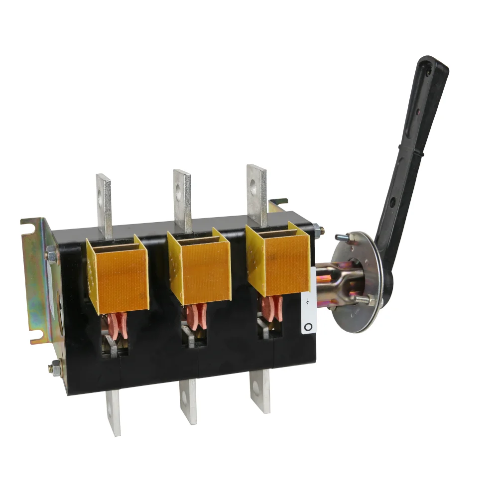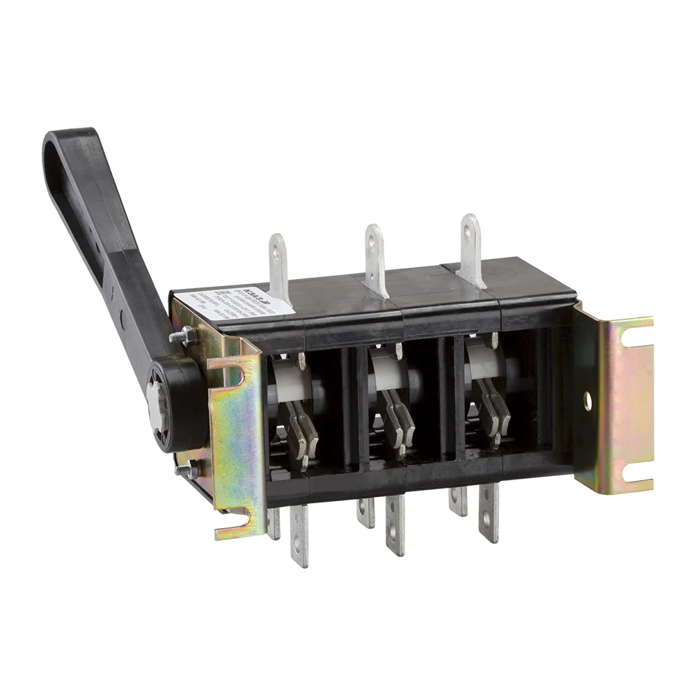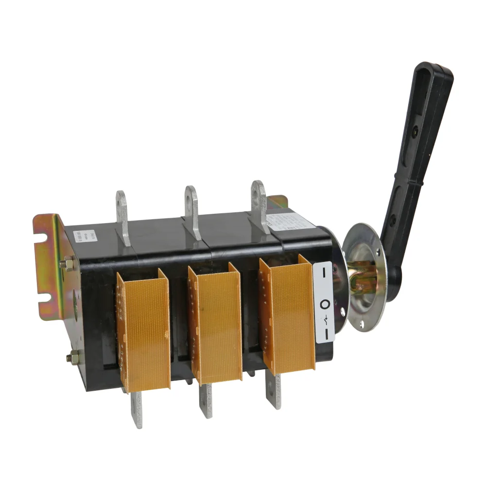 Выключатель-разъединитель 3 полюсный на номинальный ток 630 А, в котором установлена несъемная рукоятка.