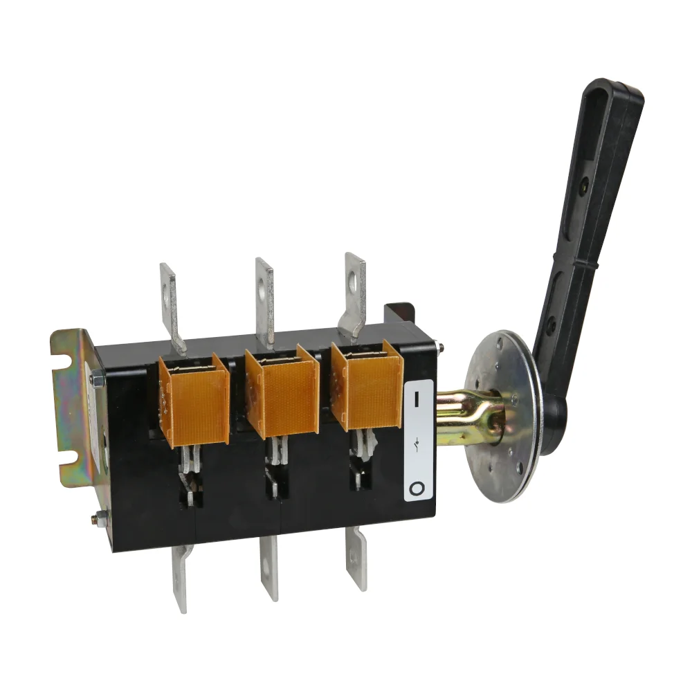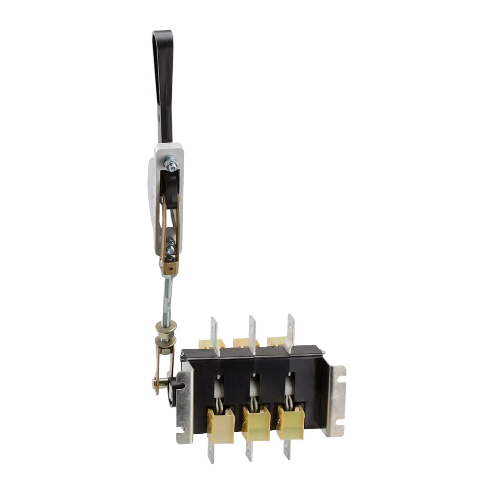 Выключатель-разъединитель 3 полюсный на номинальный ток 400 А, в котором установлена несъемная рукоятка.